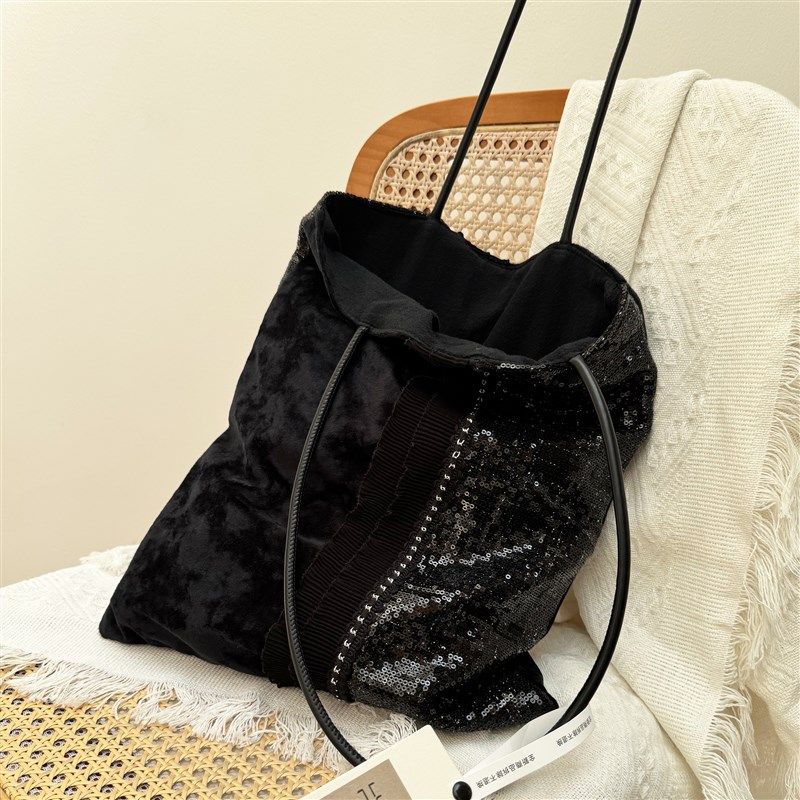 包包女款大容量高级感轻奢风帆布袋包旅行单肩包设计感黑色单肩女