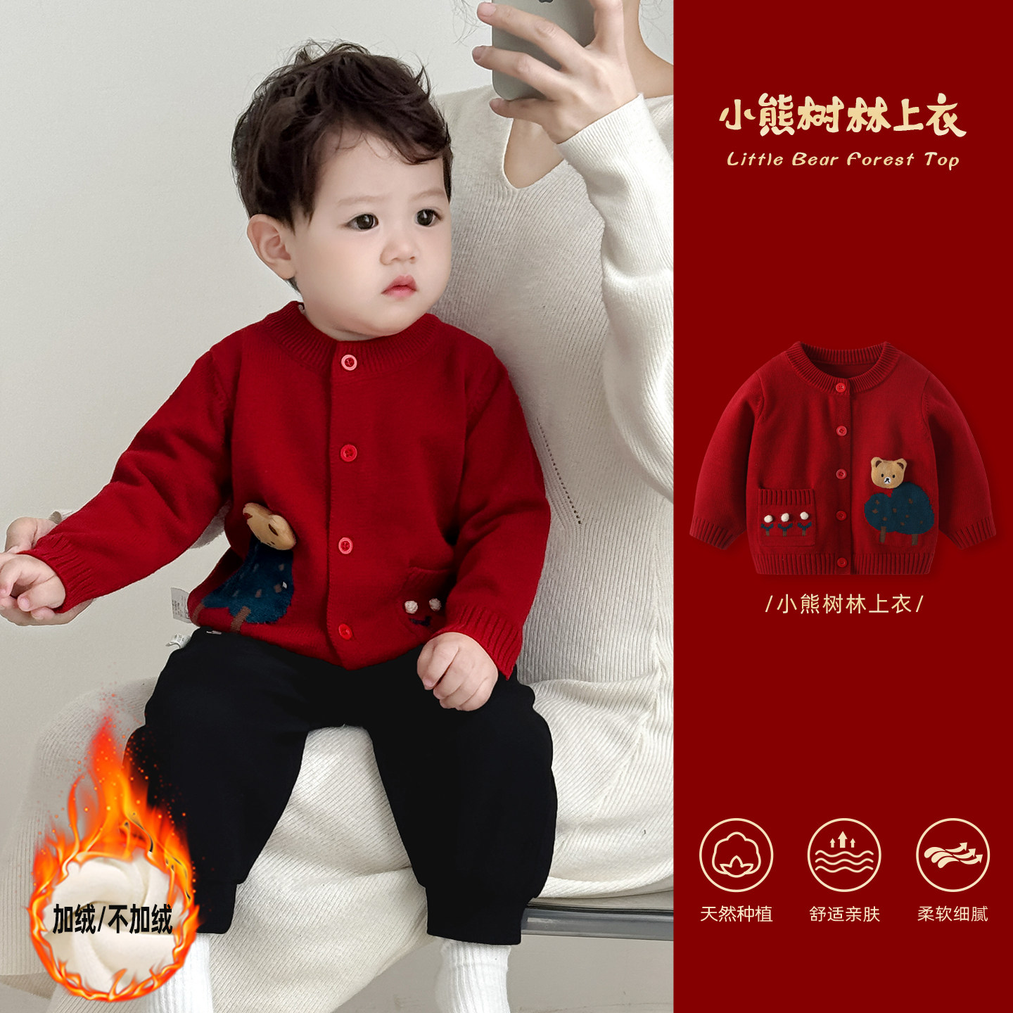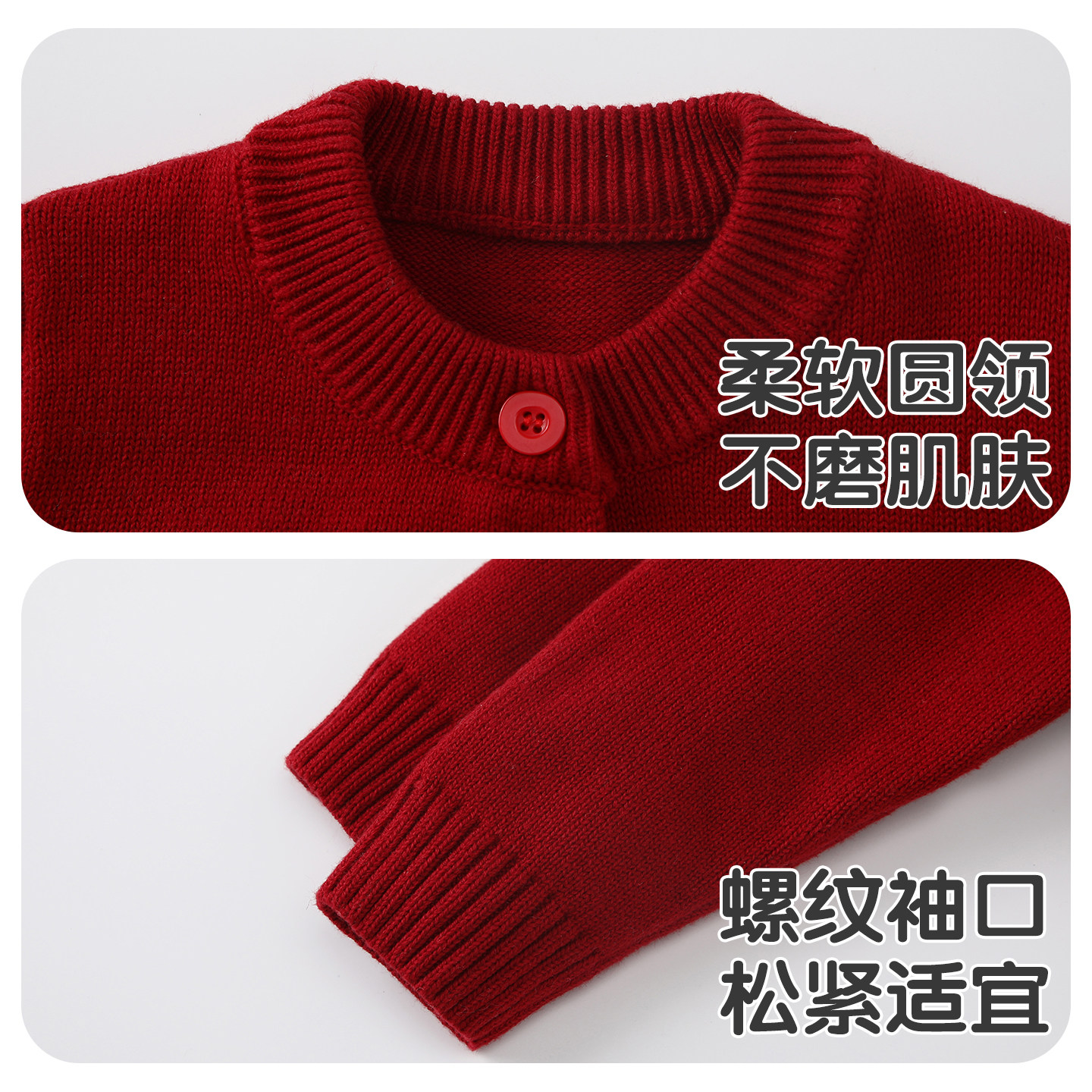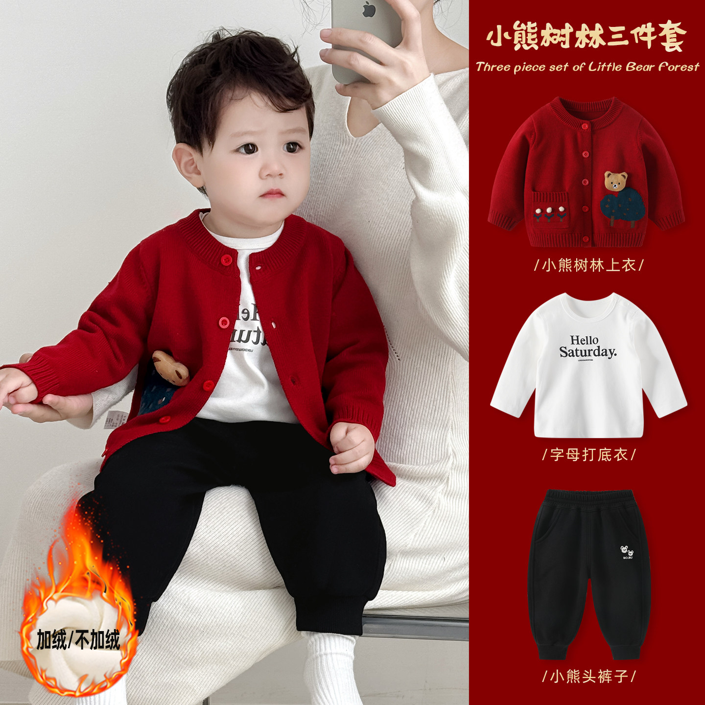 男童年服套装冬装男宝宝红色衣服女童喜庆新年过年拜年服婴儿毛衣