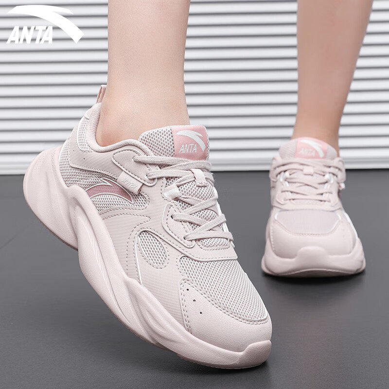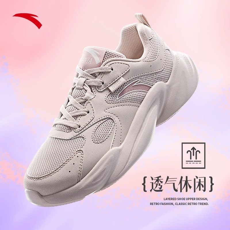 安踏女鞋冬季透气网面鞋子正品休闲鞋时尚百搭引力老爹鞋运动鞋女
