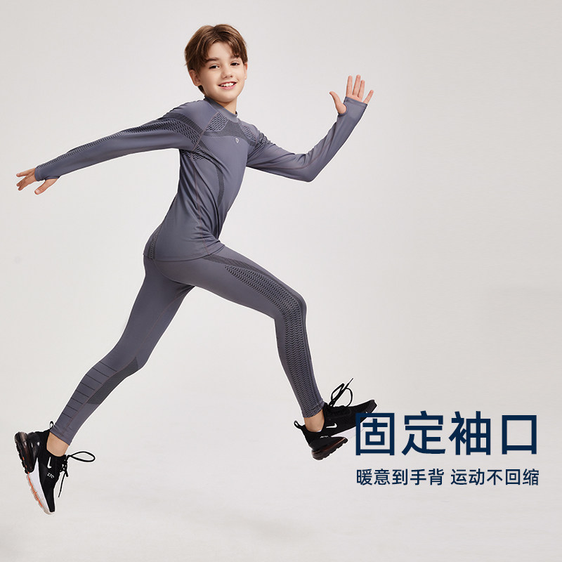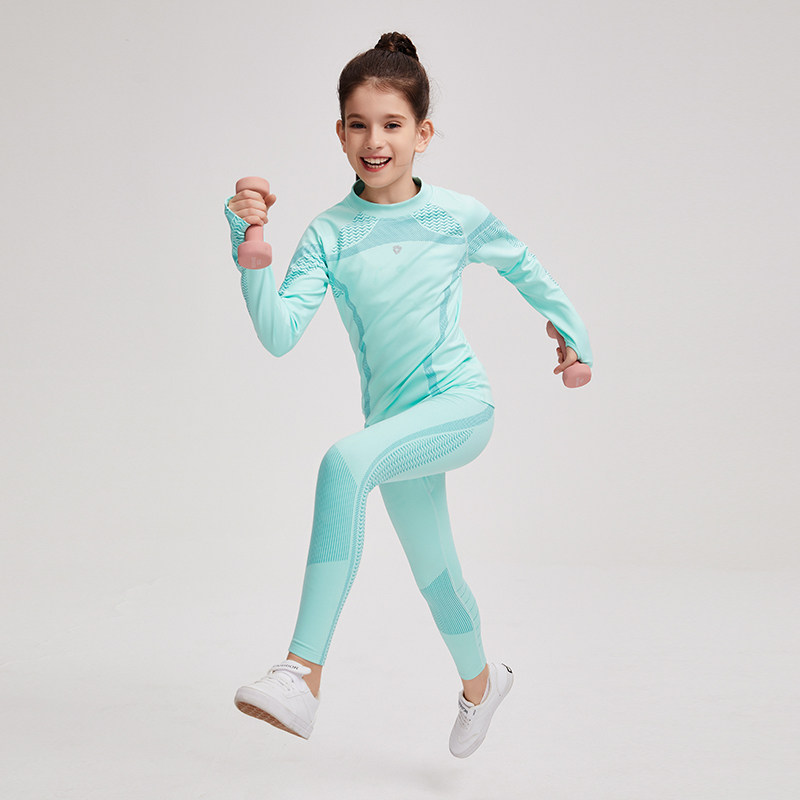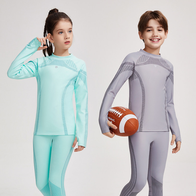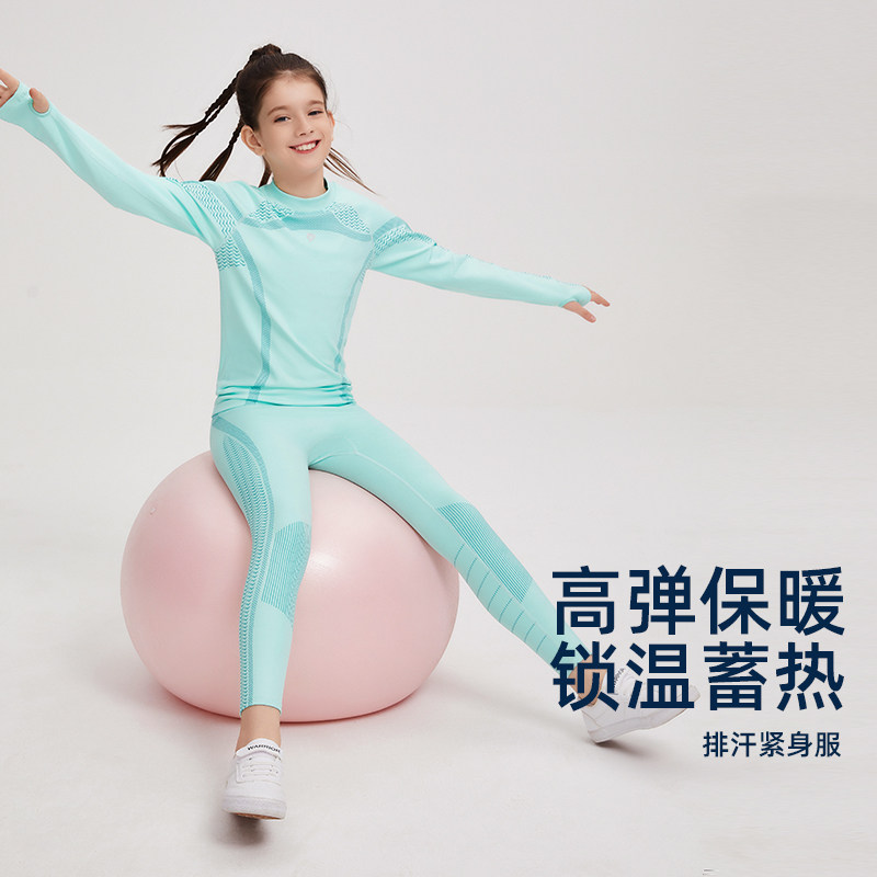 男女童圆领抓绒长袖冬季保暖打底套装训练服快干足球羽毛球健身衣