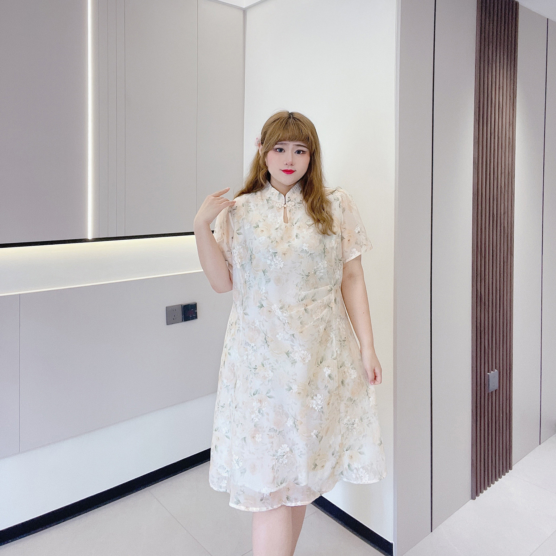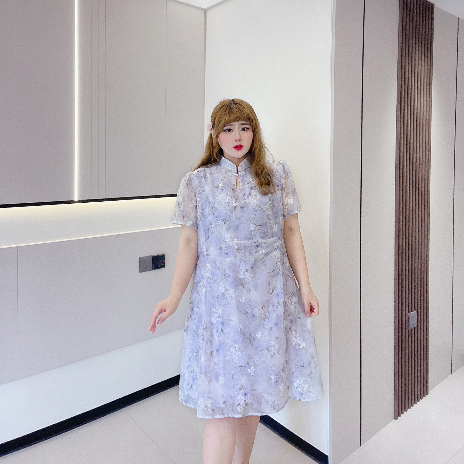 胖仙女莹莹大码女装胖mm夏国风改良旗袍小个子显瘦短款碎花连衣裙