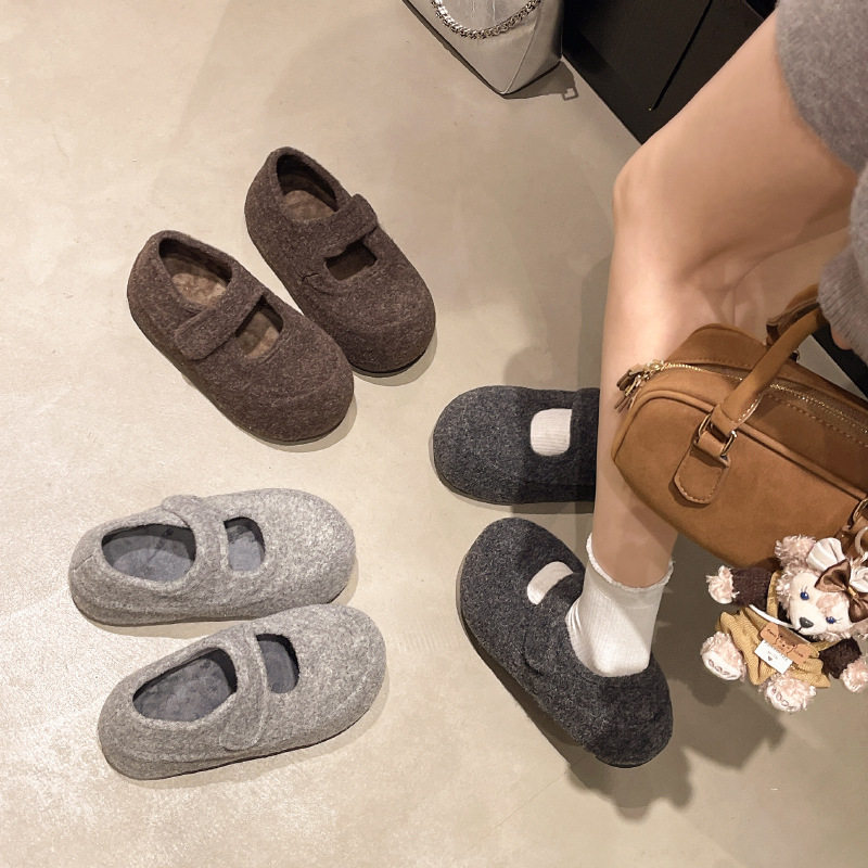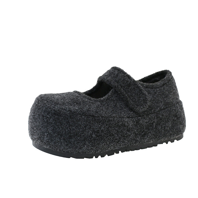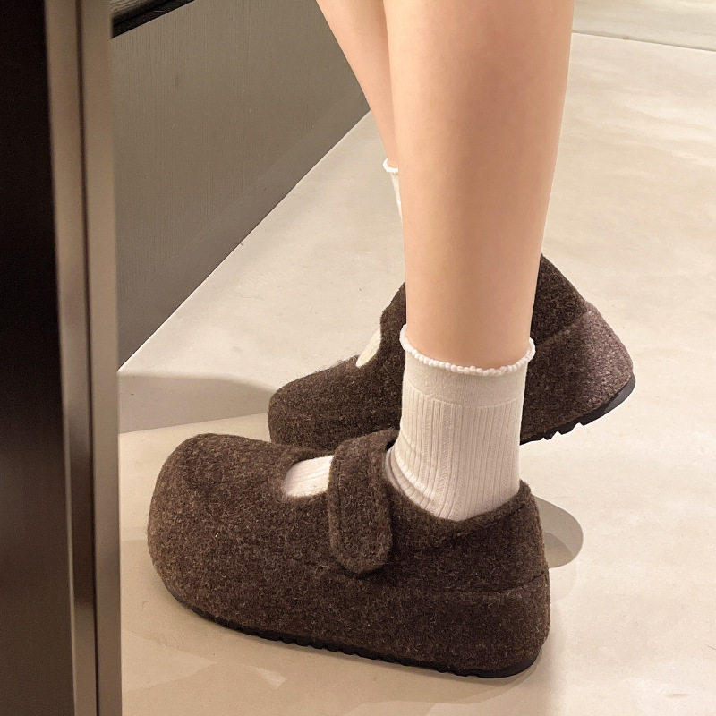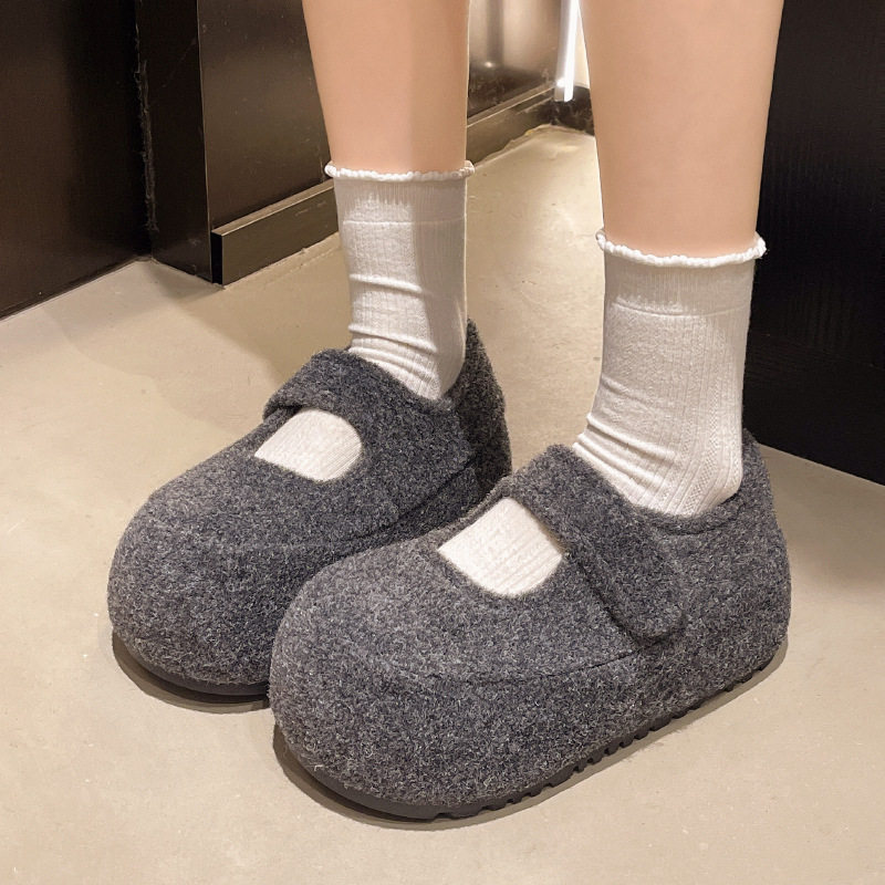 小个子内增高棉鞋5CM毛毛鞋加绒玛丽珍鞋勃肯鞋女秋冬季保暖厚底
