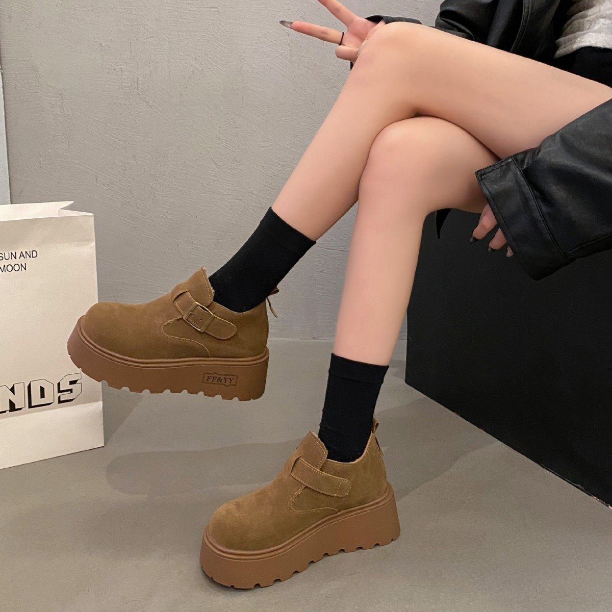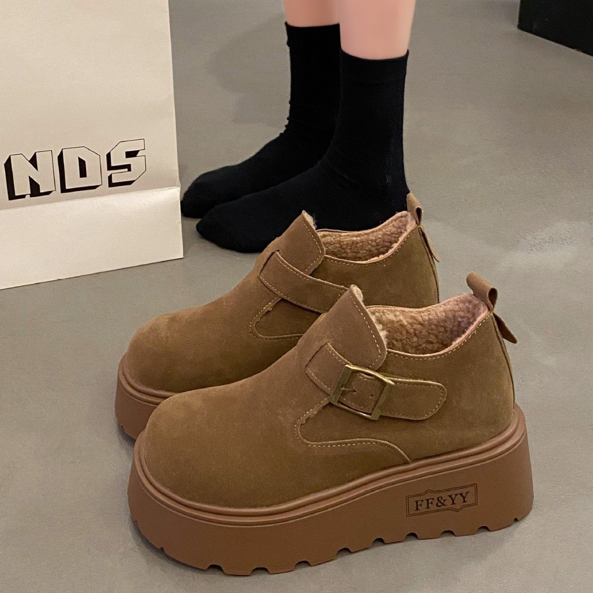 厚底勃肯鞋女外穿2025新款秋冬加绒棉鞋小个子增高松糕乐福鞋棉鞋