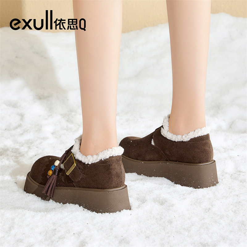 依思q厚底增高勃肯鞋女款2025秋冬新款加绒保暖小个子不累脚棉鞋