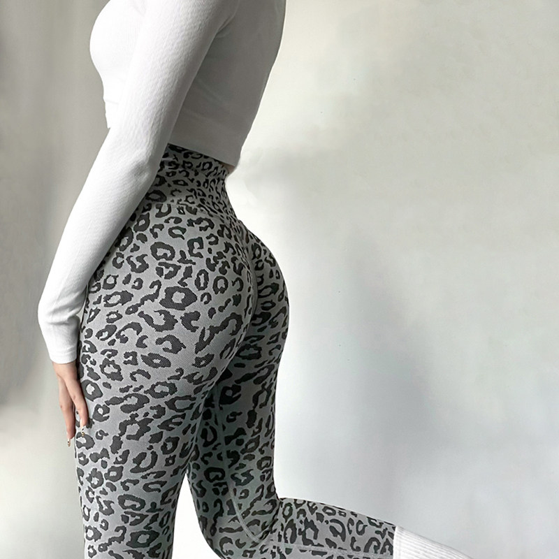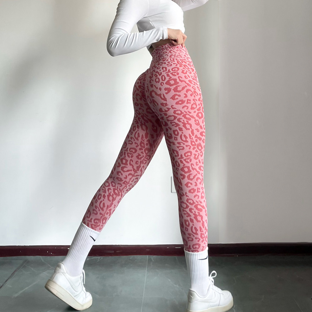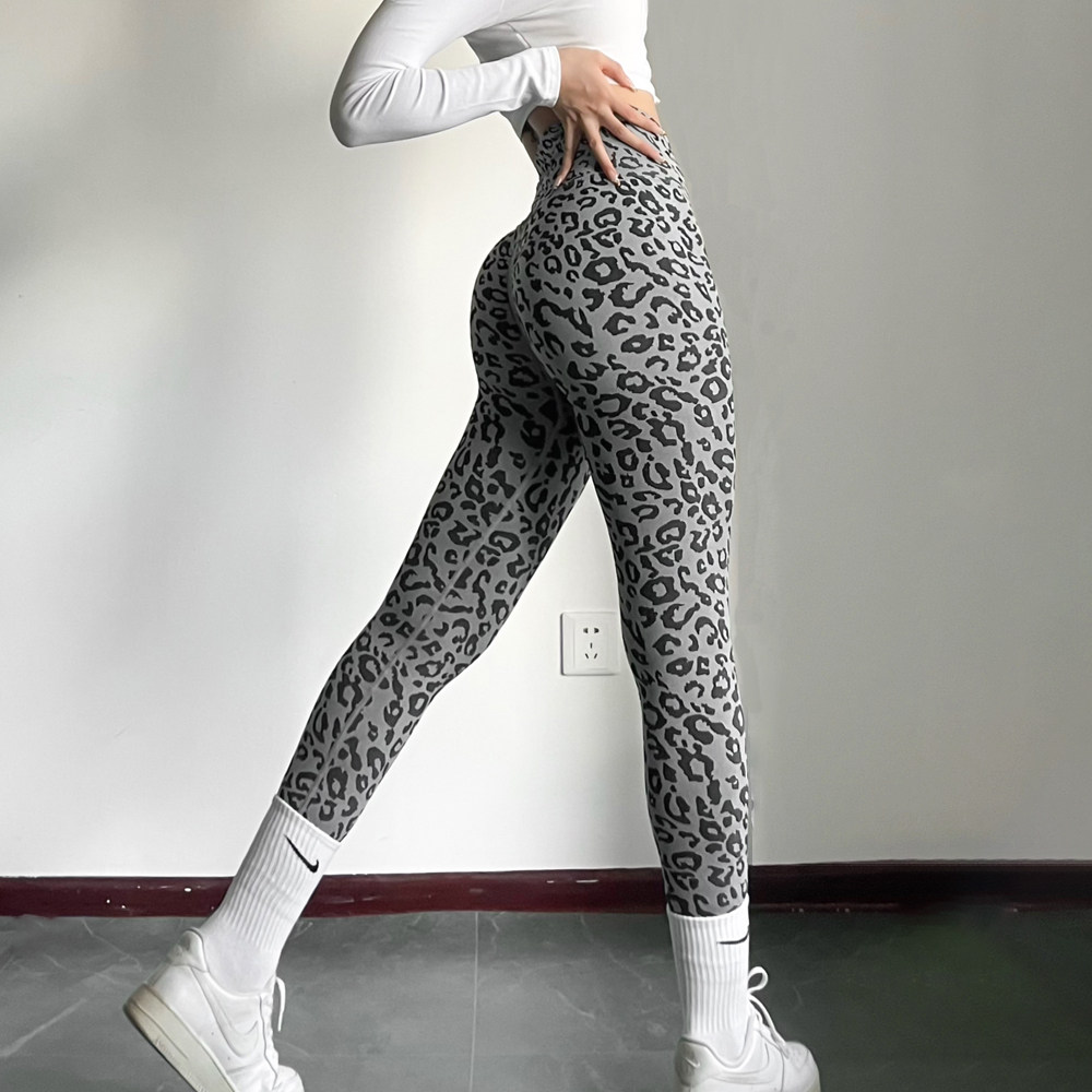 豹纹性感健身裤蜜桃提臀高腰瑜伽裤无尴尬线显臀运动紧身训练长裤