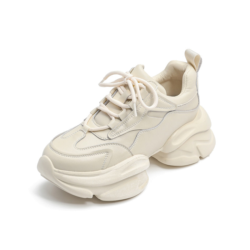 全牛皮老爹鞋女2025春季新款小个子厚底增高学生透气轻便运动鞋子