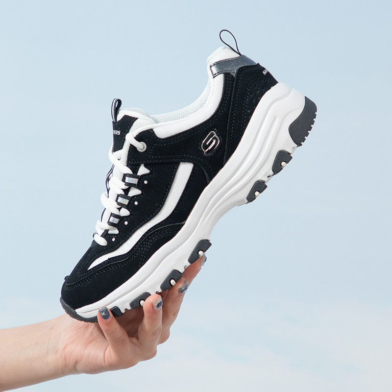 斯凯奇女鞋夏季新款正品熊猫鞋老爹鞋运动休闲鞋女款黑色复古潮