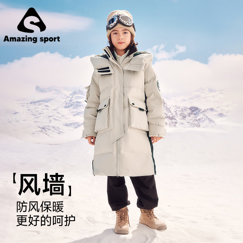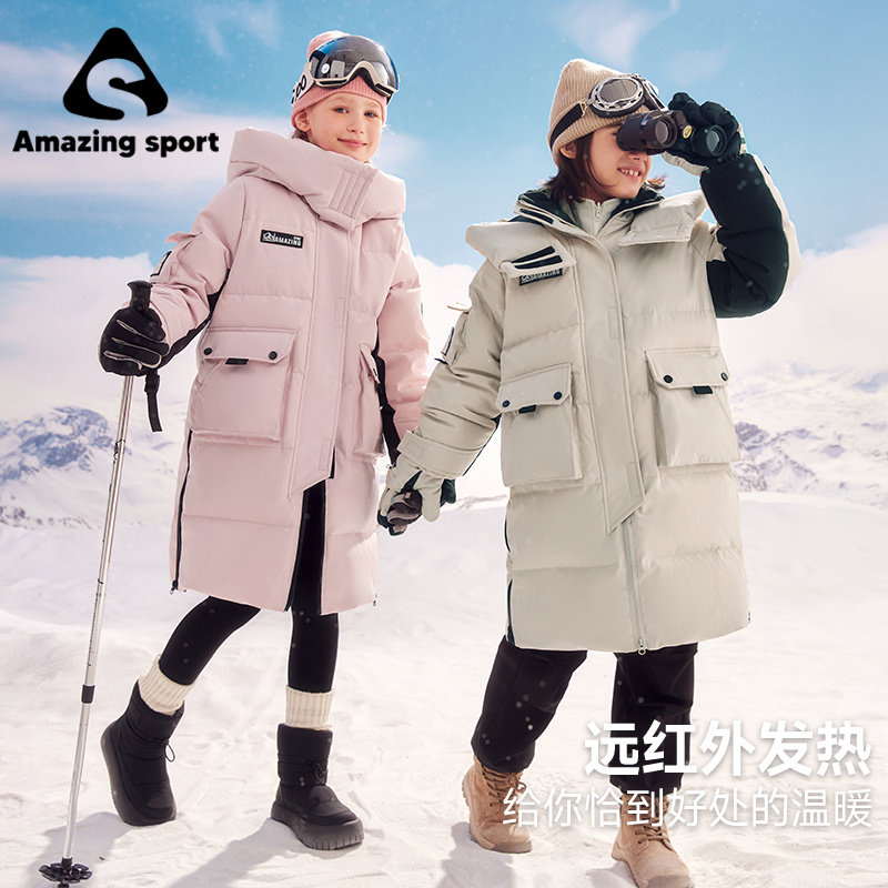 奇动童装【登峰】男女童冬季鹅绒服2026新款儿童中长款羽绒服内胆
