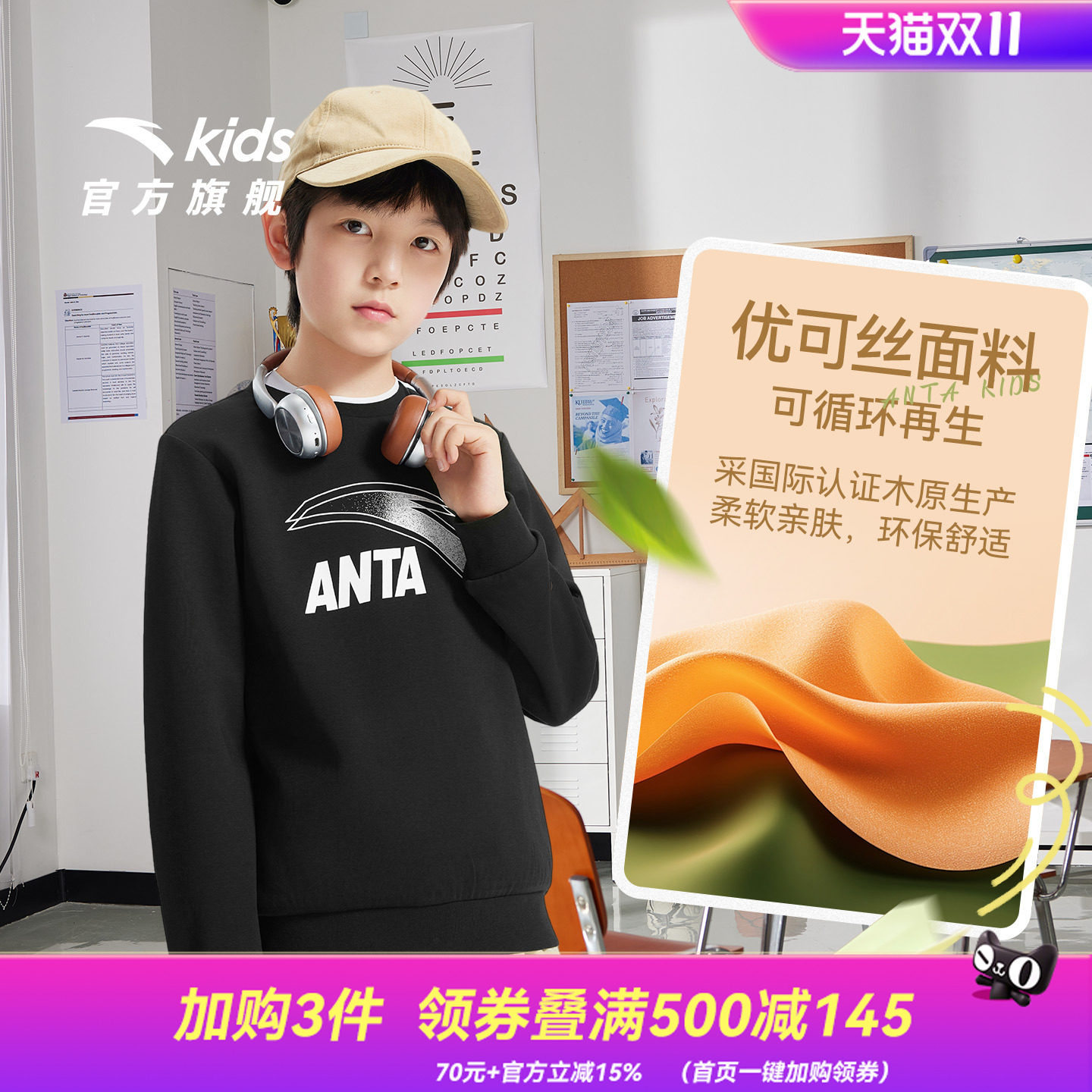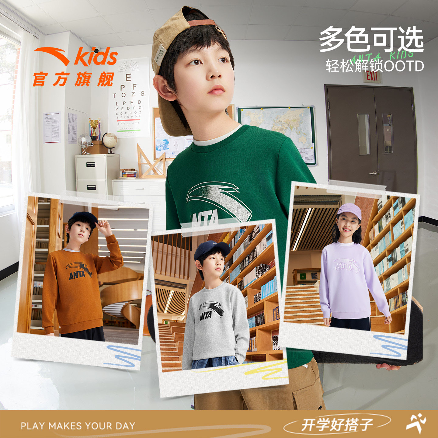 安踏儿童男女童针织套头衫2025秋新款舒适亲肤中大童运动圆领卫衣