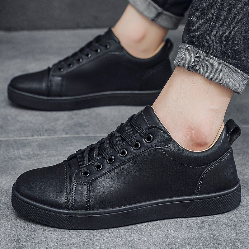 黑色板鞋男士纯黑鞋商务工作休y闲鞋子男2024新款上班不累脚防水