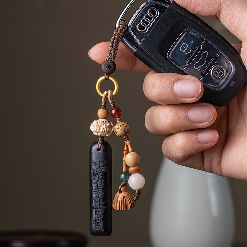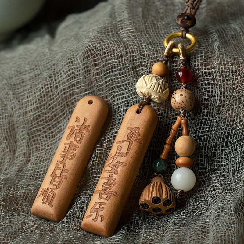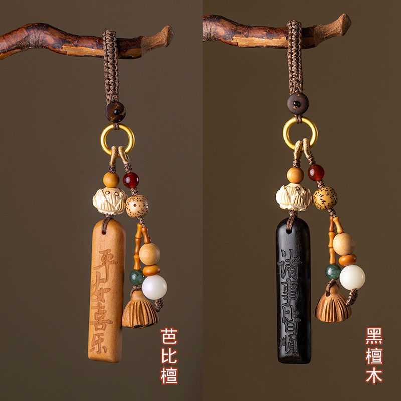 天然檀木防丢号码牌汽车钥匙扣挂件挂绳无事牌可刻字汽车挂饰定制