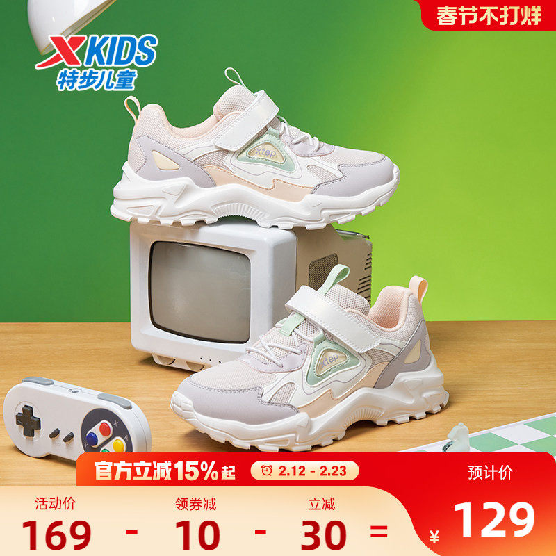 特步女童鞋2026秋冬新款儿童运动鞋中大童革面保暖魔术贴跑步鞋子