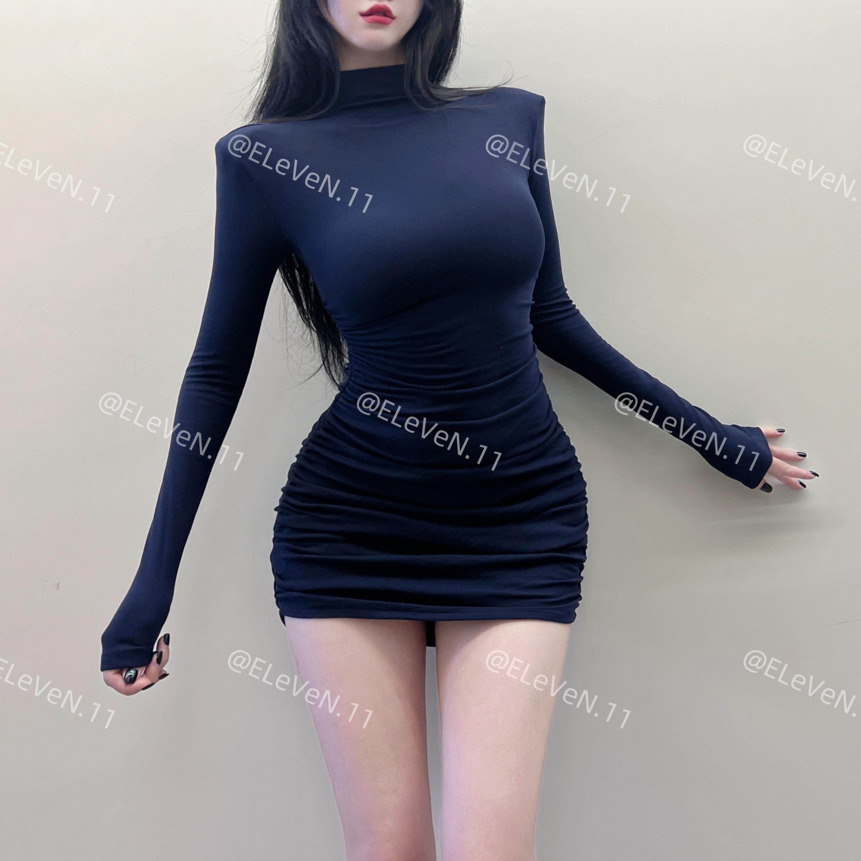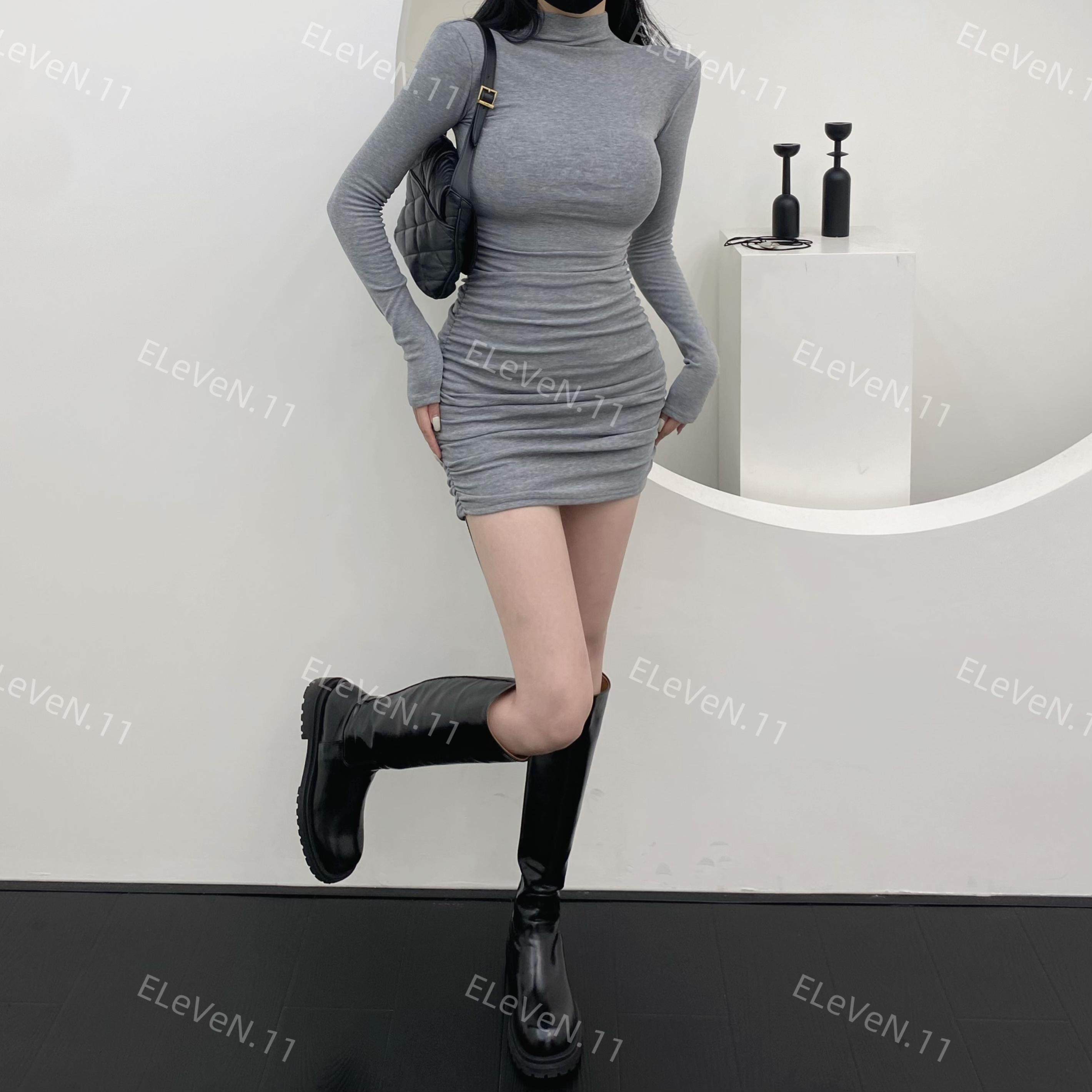 韩国ins气质加绒秋冬修身显瘦连衣裙显胸性感包臀加厚内搭打底裙