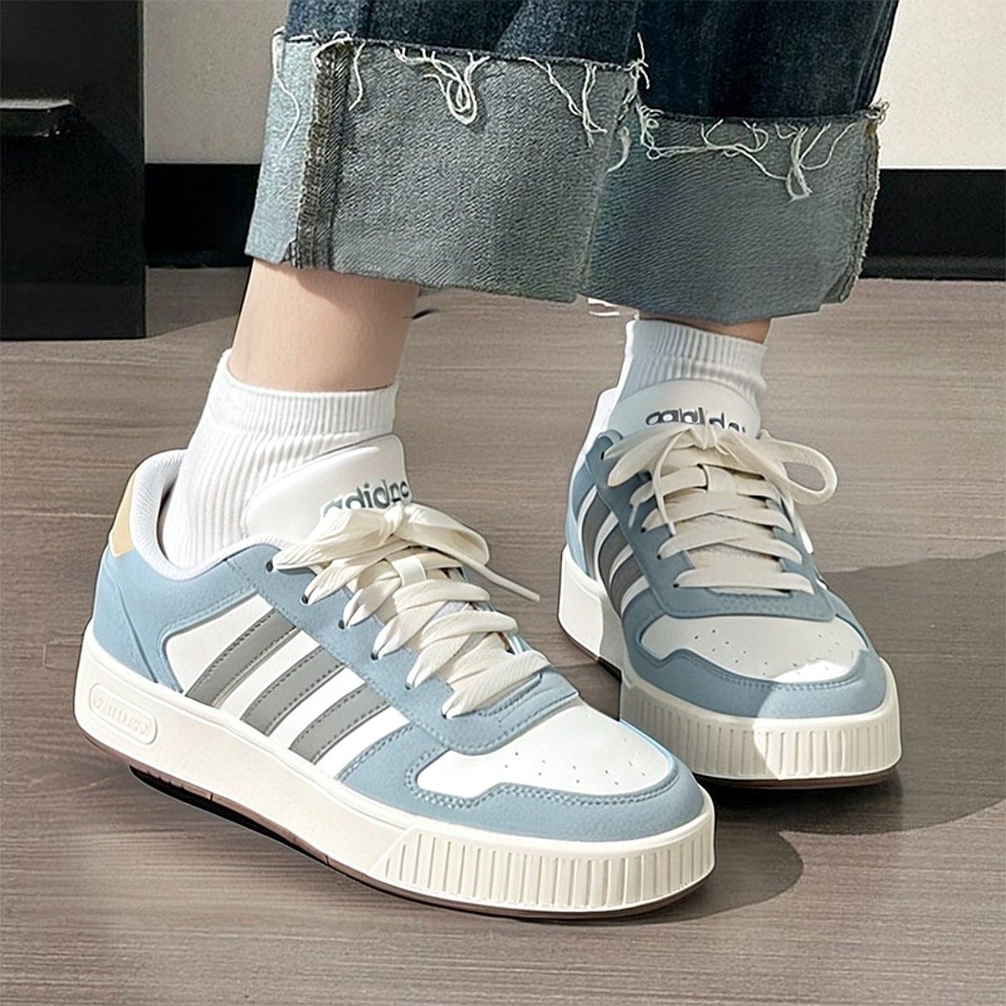 阿迪达斯板鞋女秋季新款篮球美式小锯齿低帮蓝色小白鞋复古女鞋