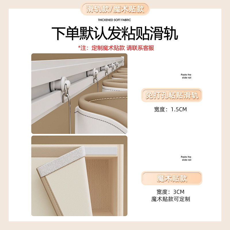 柜子杂物遮挡帘门帘防尘帘免打孔滑轨式厨房帘子书柜橱柜遮丑布帘