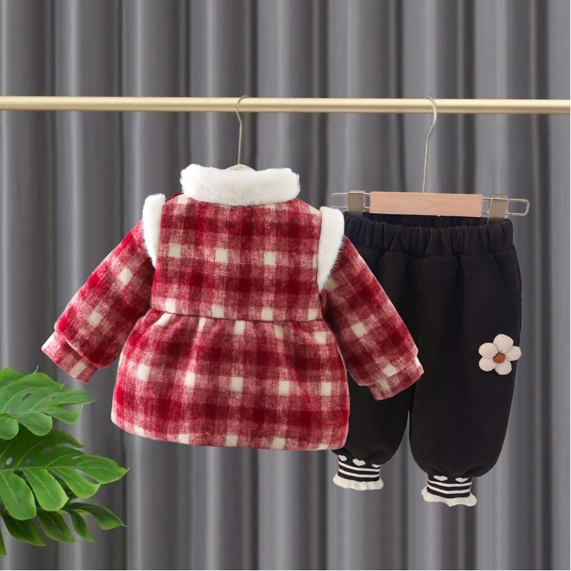 女童冬装套装2026新款儿童加绒洋气格子巨好看小女孩宝宝冬季时髦