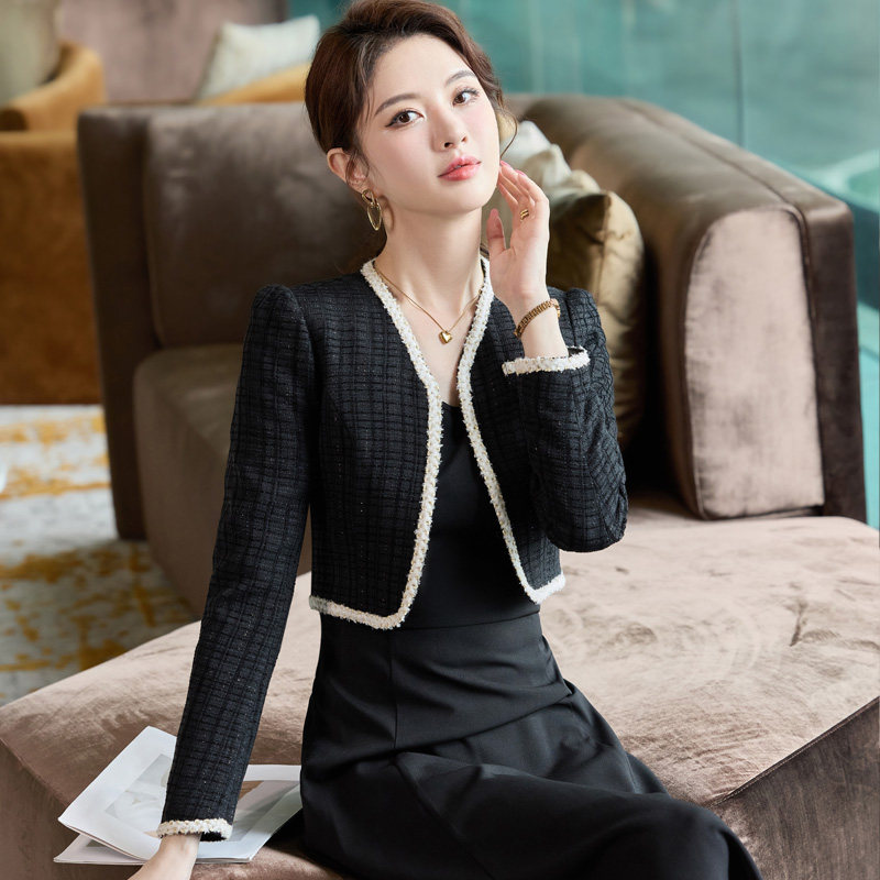 小香风短款外套女春秋季新款小个子开衫连衣裙两件套时髦洋气套装