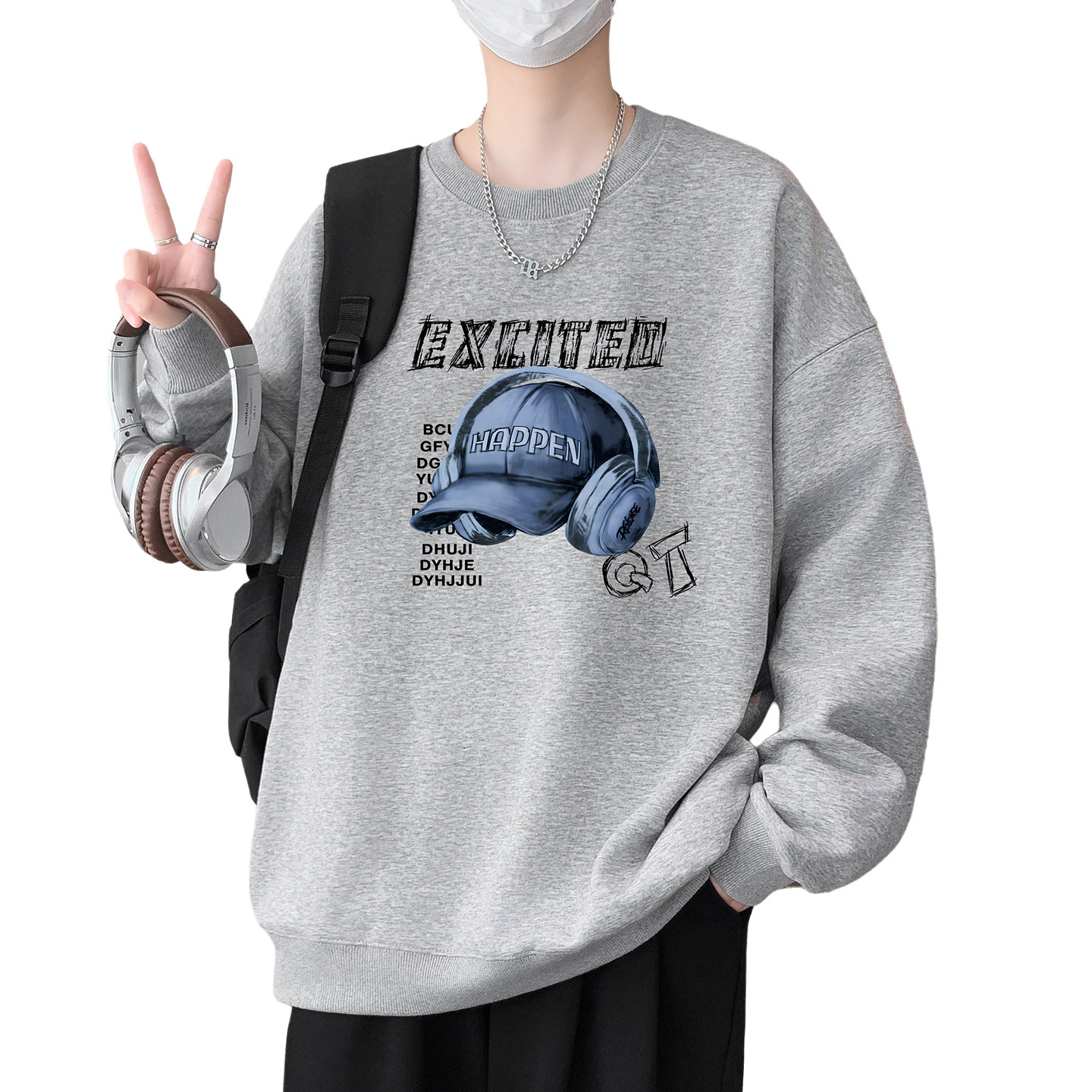 秋冬季长袖圆领卫衣男孩初中学生加绒加厚青少年大童保暖内搭上衣