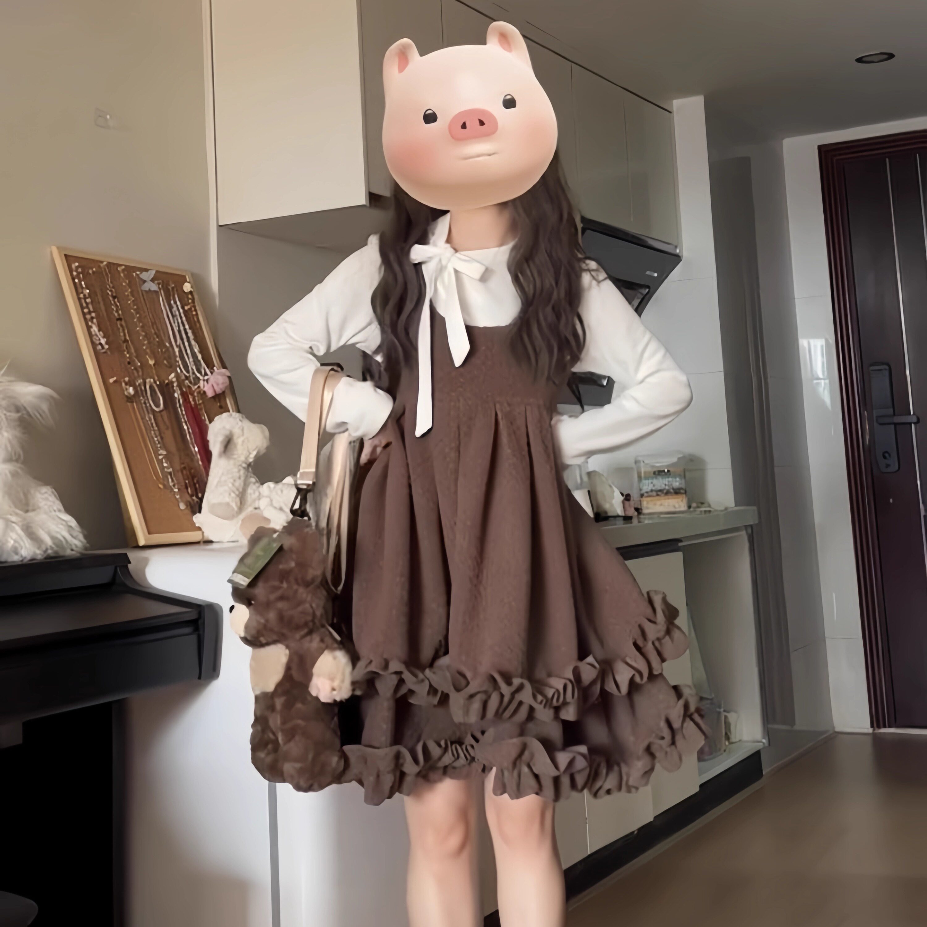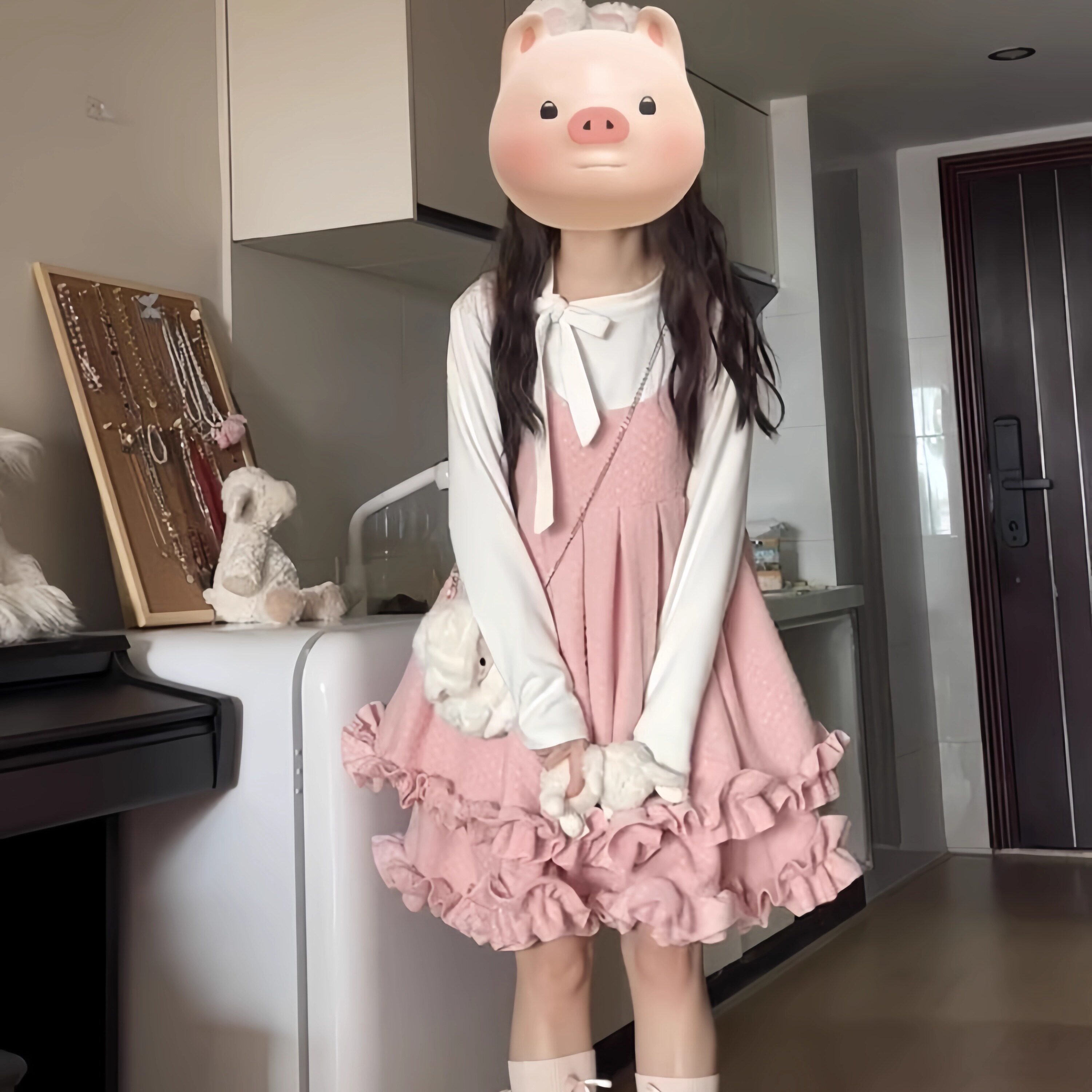 秋冬季新款甜美可爱无袖背心背带连衣裙女学生+内搭上衣两件套装