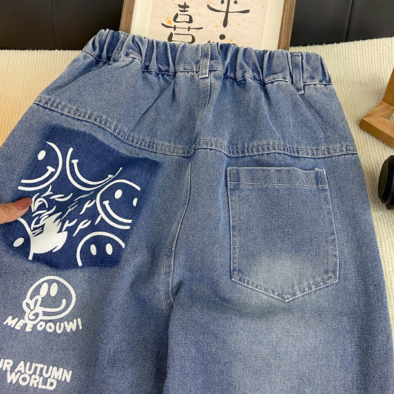 海洋家特价童装 儿童秋季新款牛仔裤 中大童单裤 男女童长裤