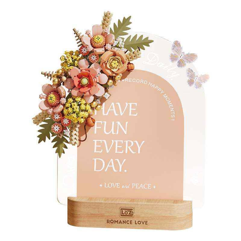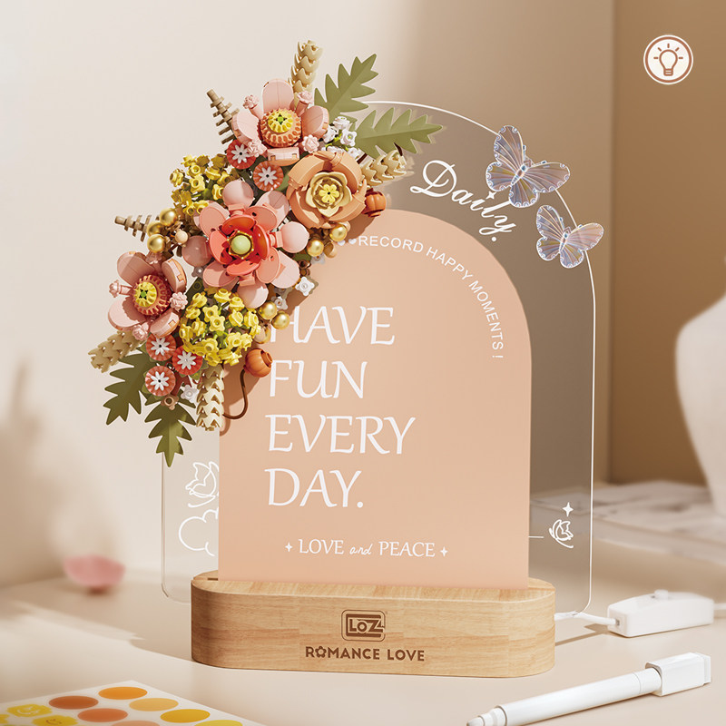 俐智LOZ积木胭粉留言板灯光diy桌面摆件拼装玩具梦蓝留言板礼物女