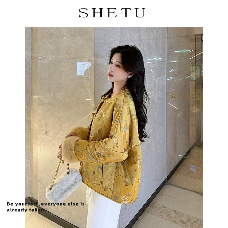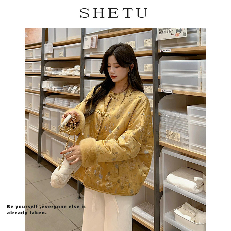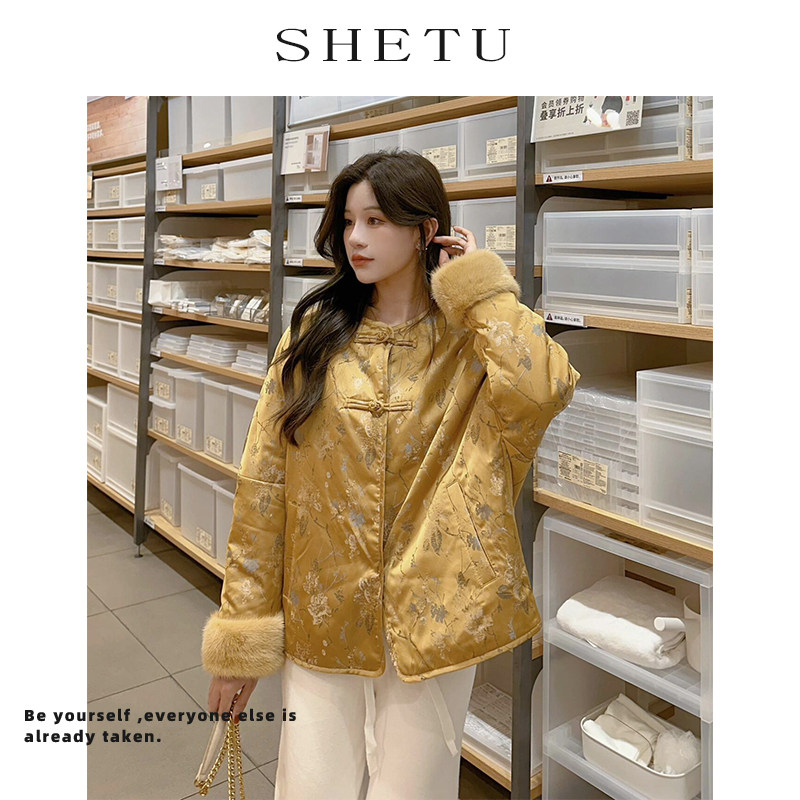 新中式复古轻国风提花国风棉服外套女冬季新款加厚夹棉盘扣棉衣