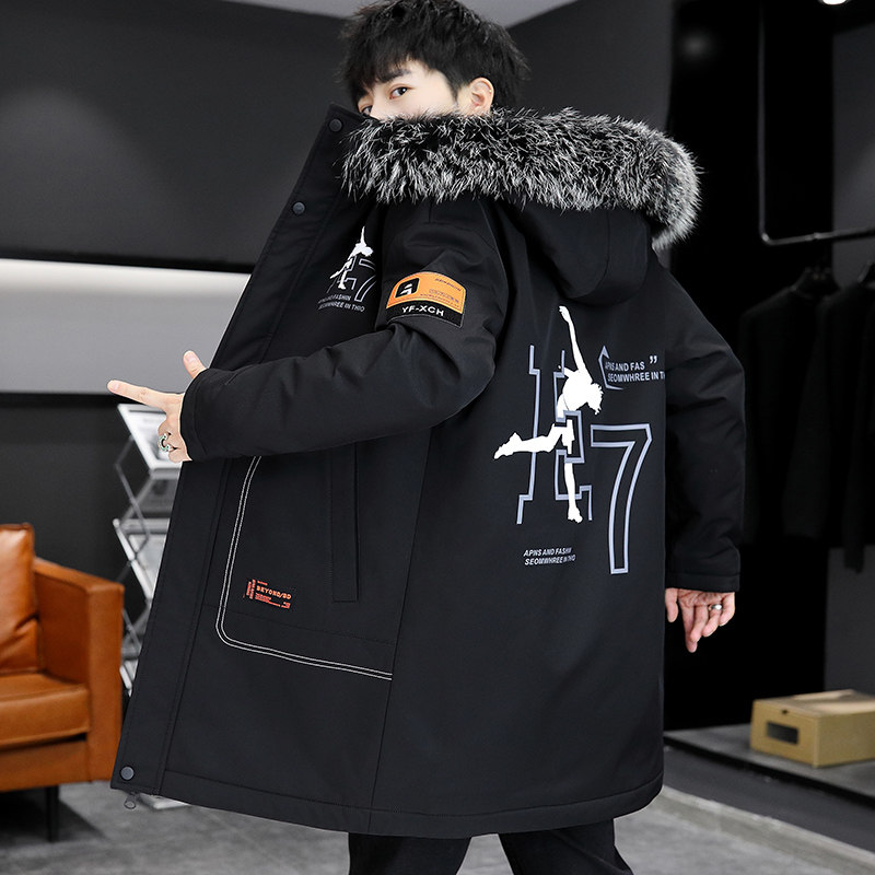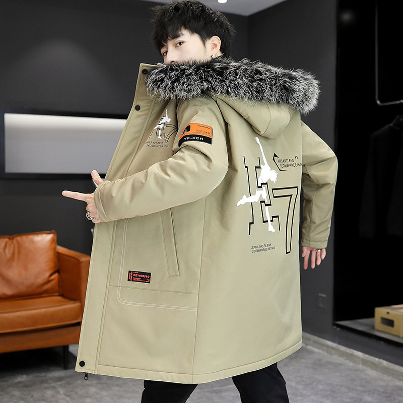 青少年男款羽绒服中长款加绒加厚派克服男装帅气学生棉服冬季外套