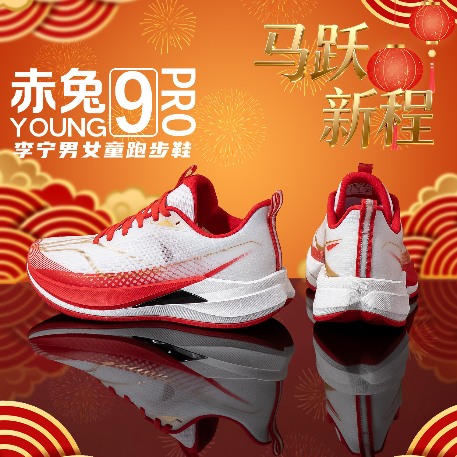 李宁官方旗舰正品儿童跑步鞋26年新款赤兔9PRO新年减震红色运动鞋
