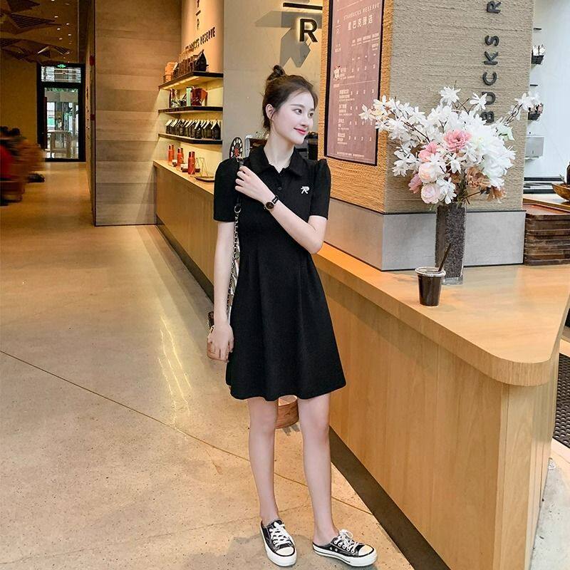 polo连衣裙女夏季新款大码胖mm气质小个子小香风收腰a字裙子240斤