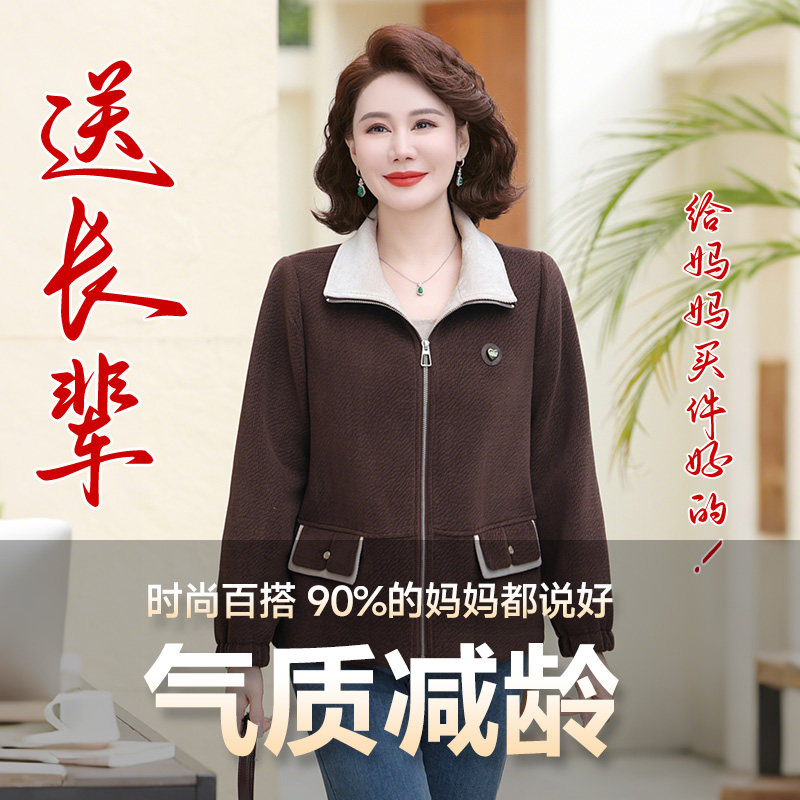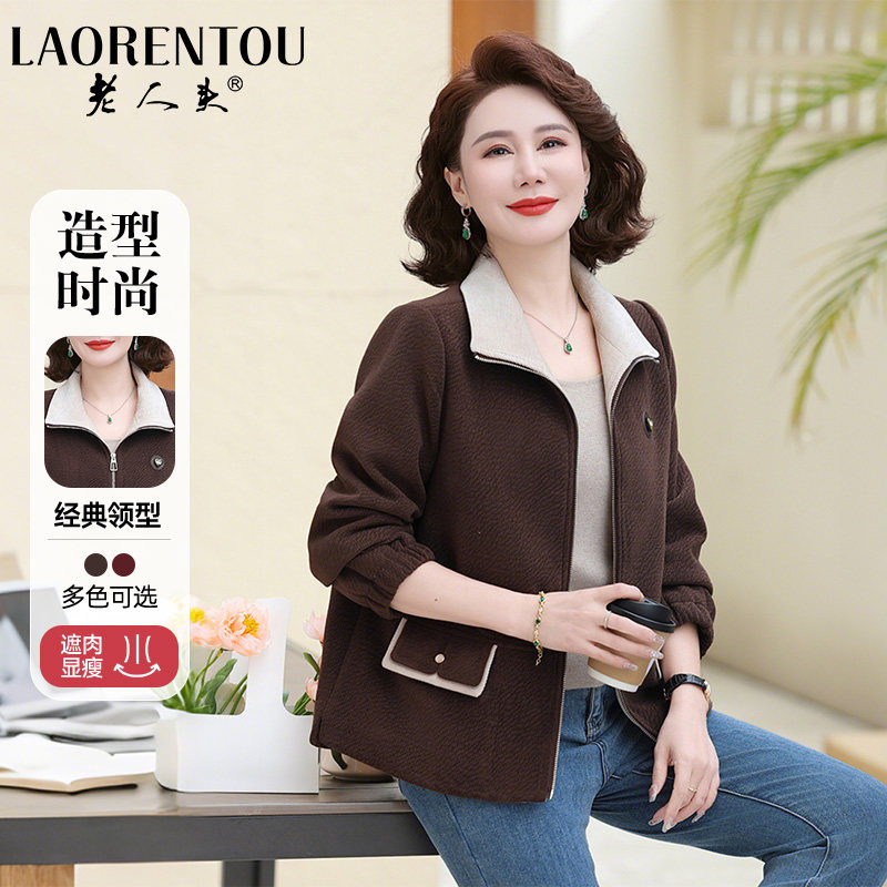 老人头妈妈洋气春装宽松外套2025新款中老年女装百搭时尚短款上衣