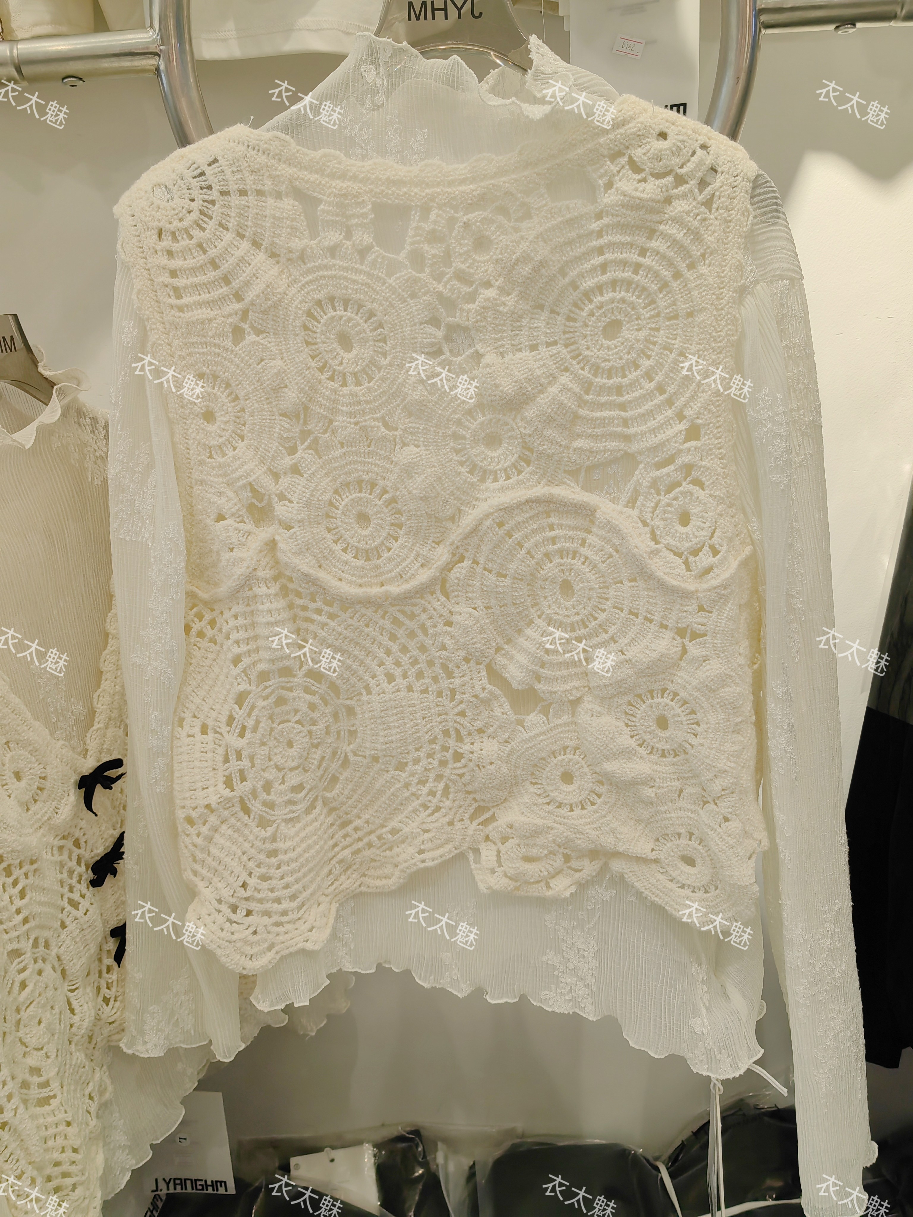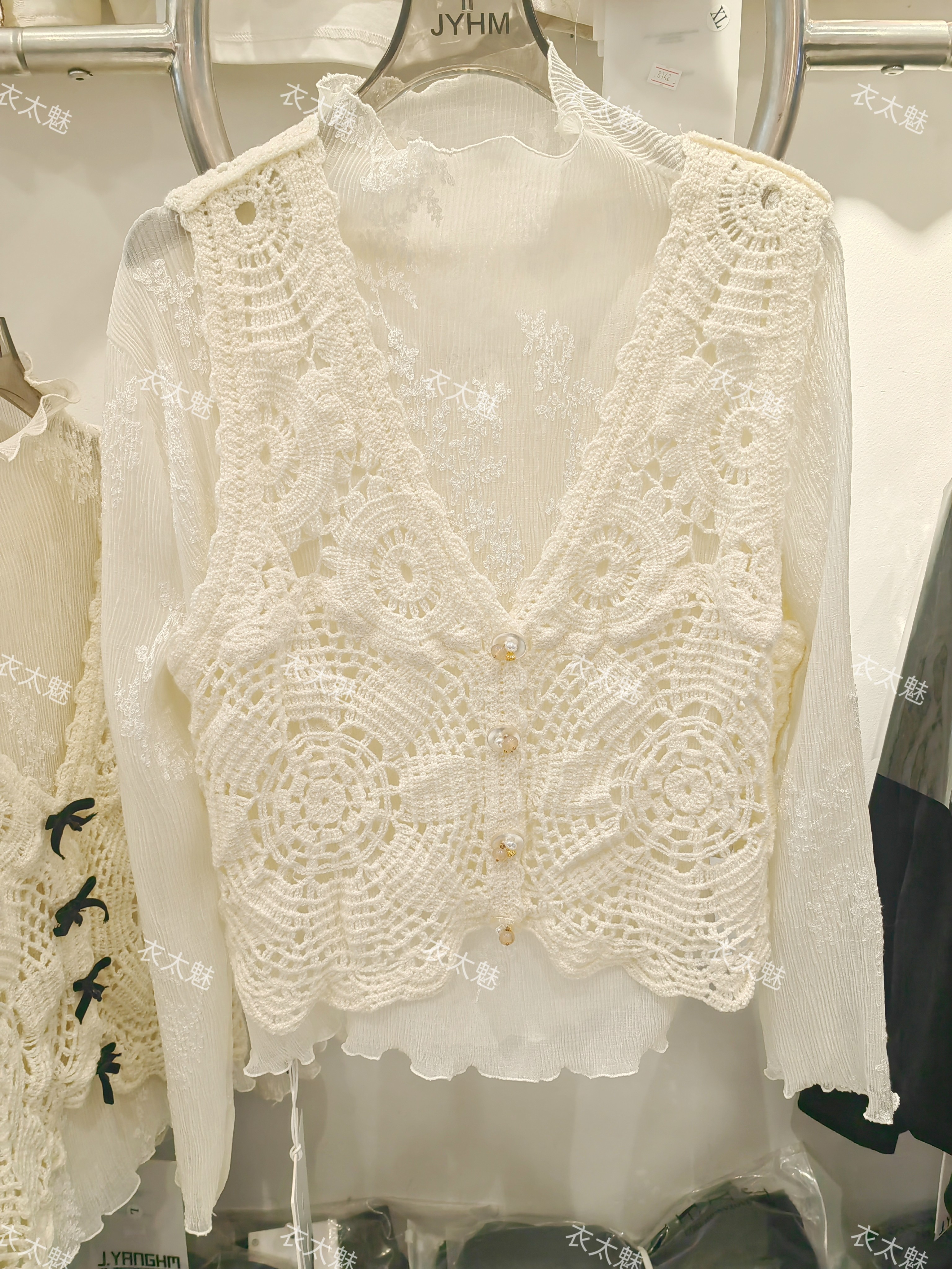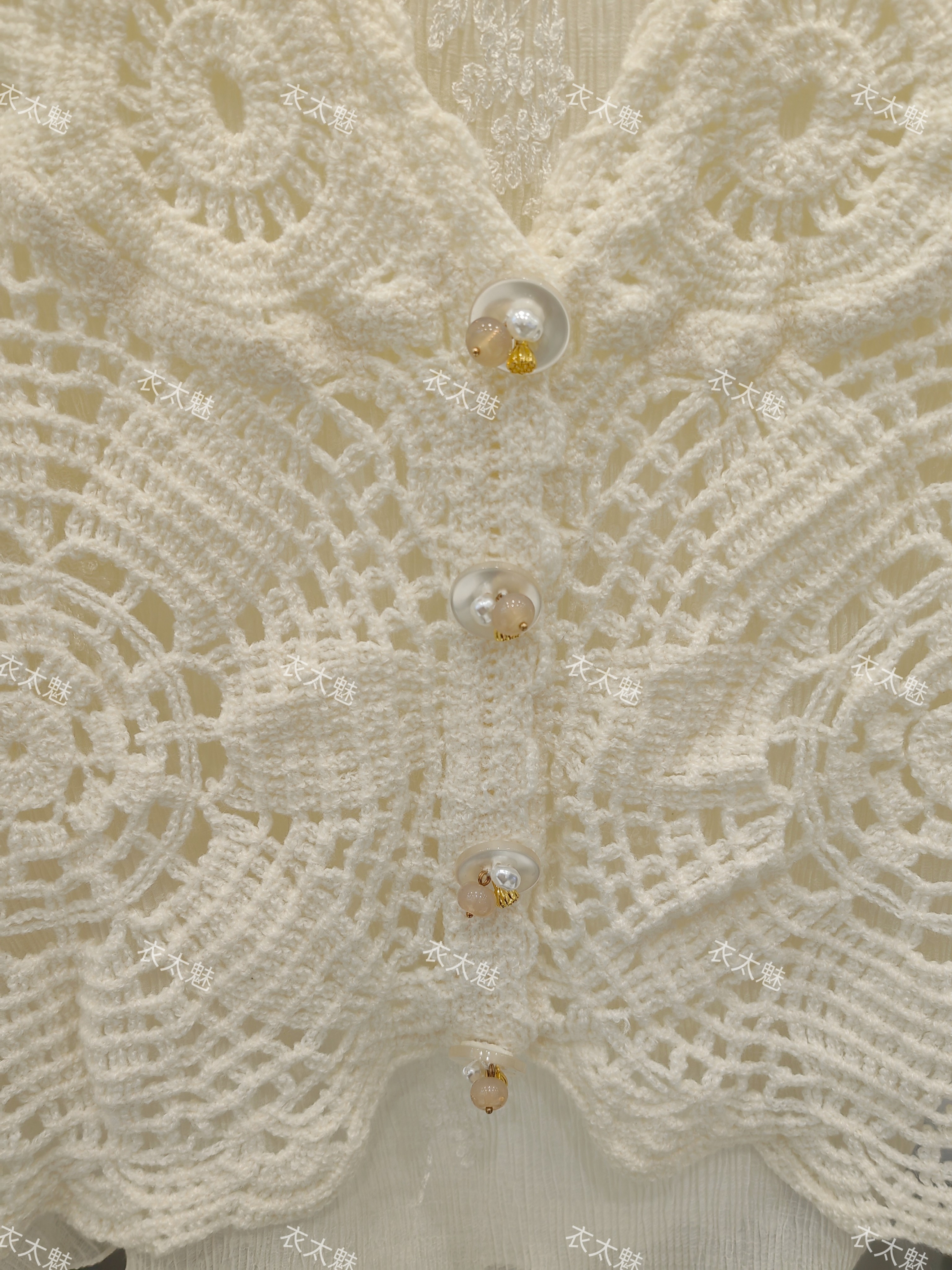2026早春新款提花弹力雪纺衫纽扣结装饰针织背心两件套套装女装