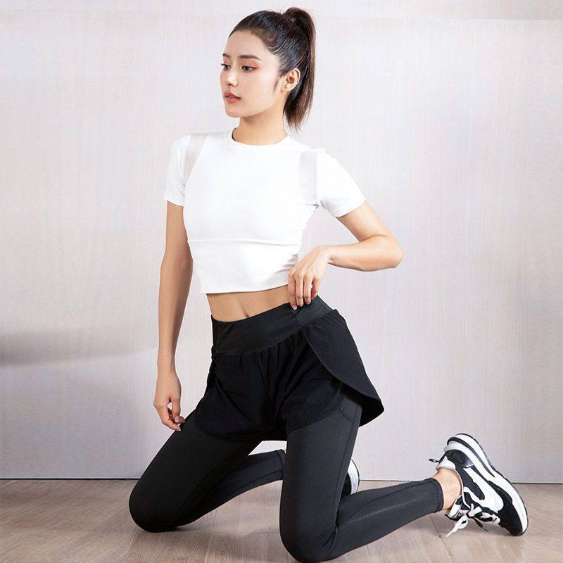 瑜伽裤女健身假两件口袋瑜伽裤女弹力高腰提臀跑步健身运动紧身裤