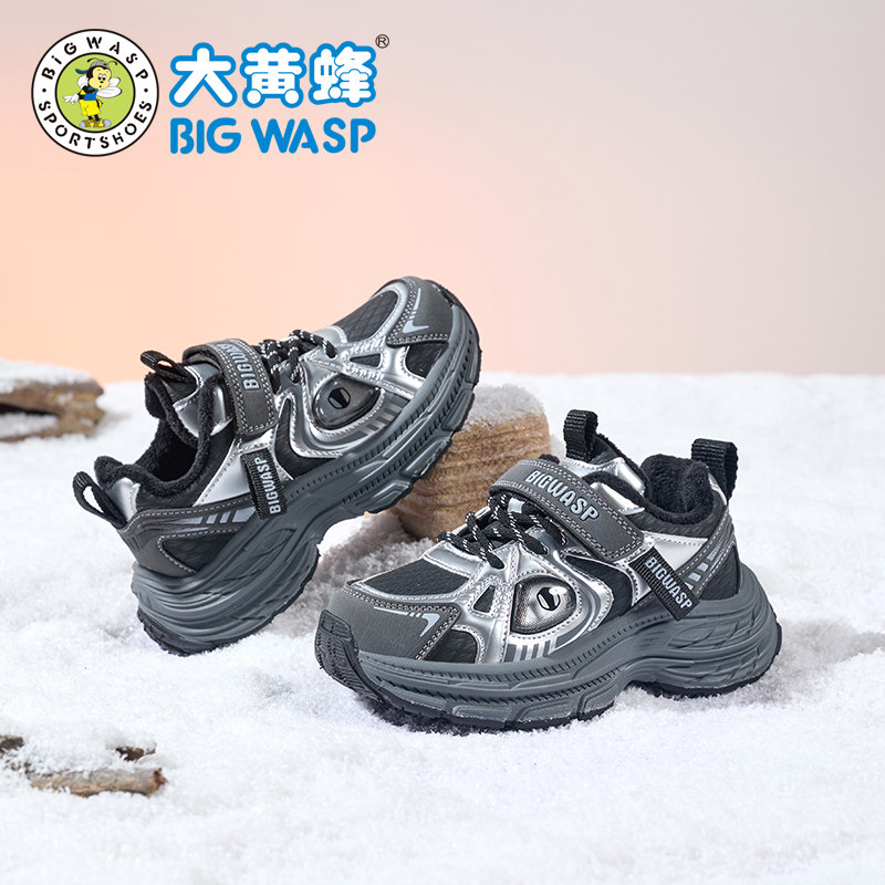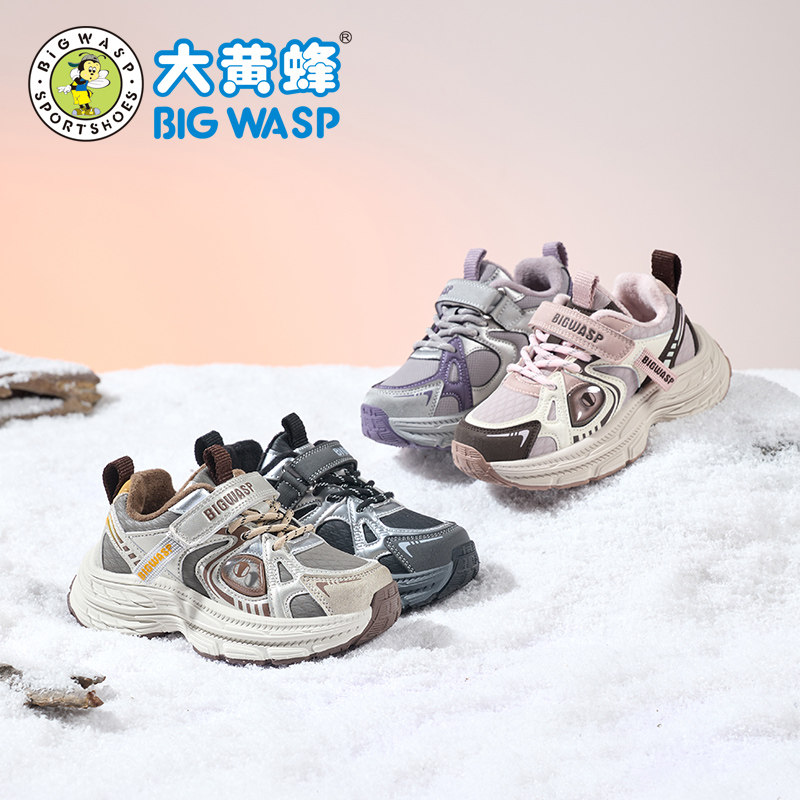 大黄蜂童鞋女童运动鞋秋冬加绒加厚保暖时尚二棉鞋休闲儿童老爹鞋
