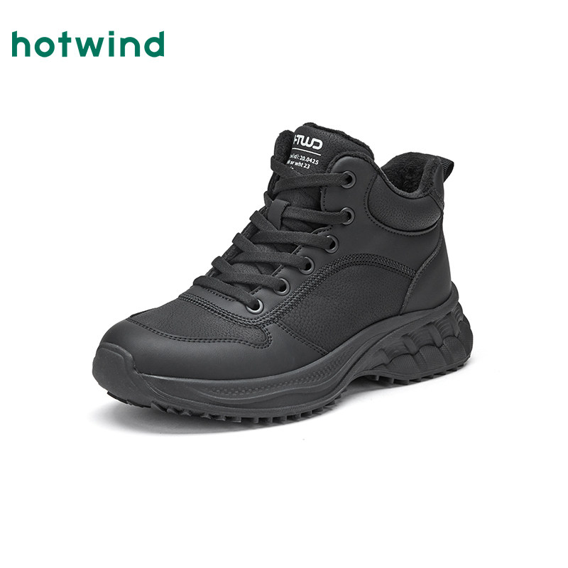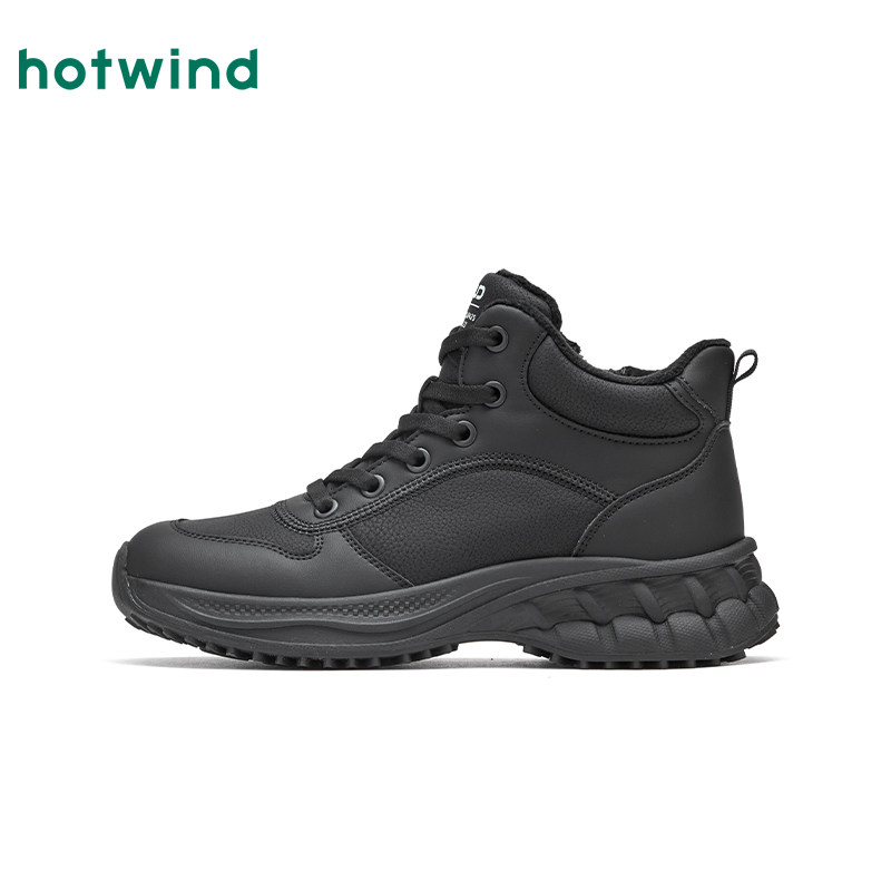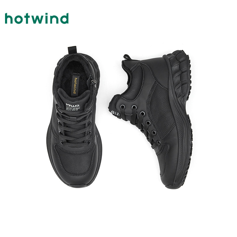 热风加绒休闲鞋女2025年冬季新款黑色高帮运动女鞋百搭厚底老爹鞋