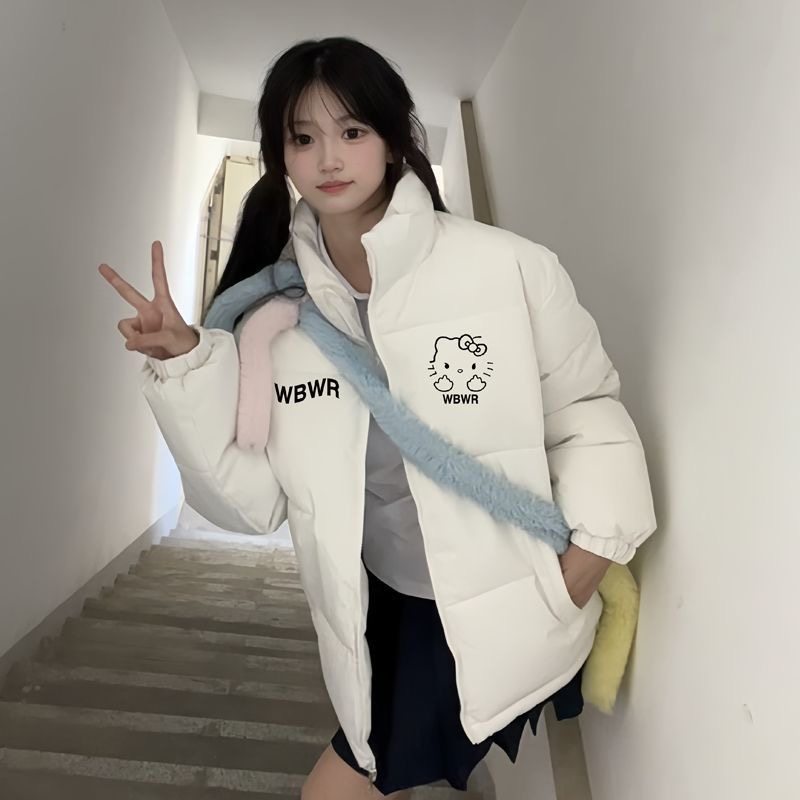 冬季新款黑色立领羽绒棉服女大童初中高中学生宽松面包服外套棉袄