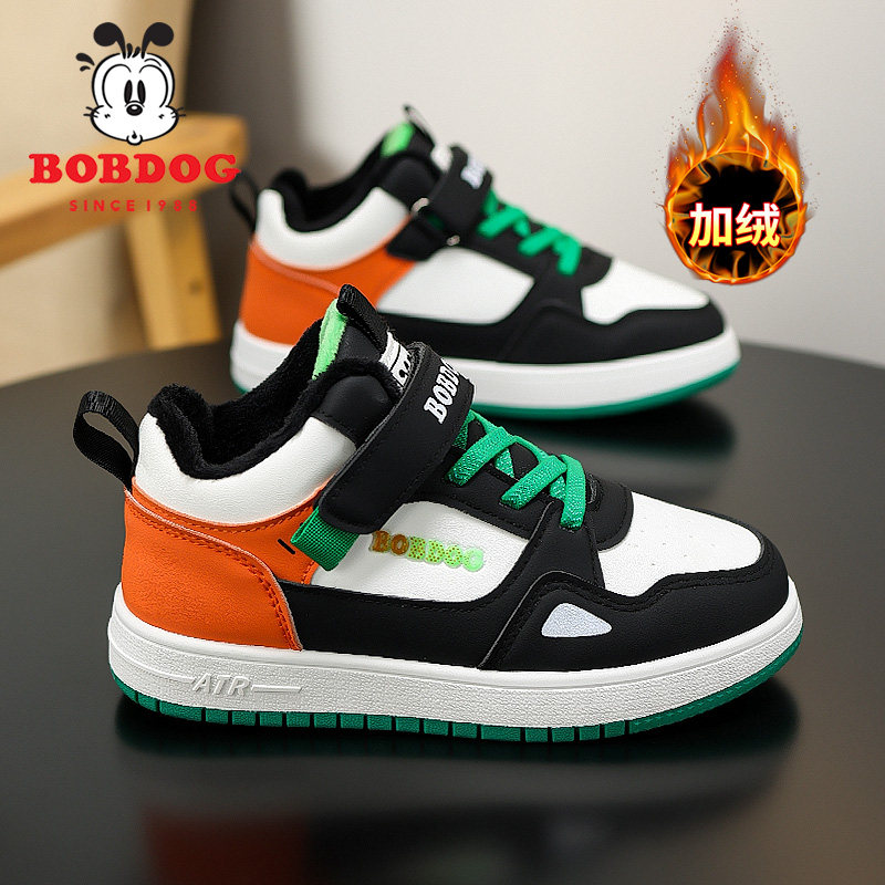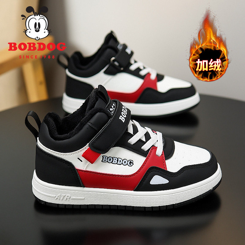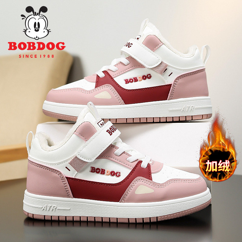 巴布豆童鞋女童高帮棉鞋冬季2025新款加绒加厚儿童运动鞋女孩板鞋
