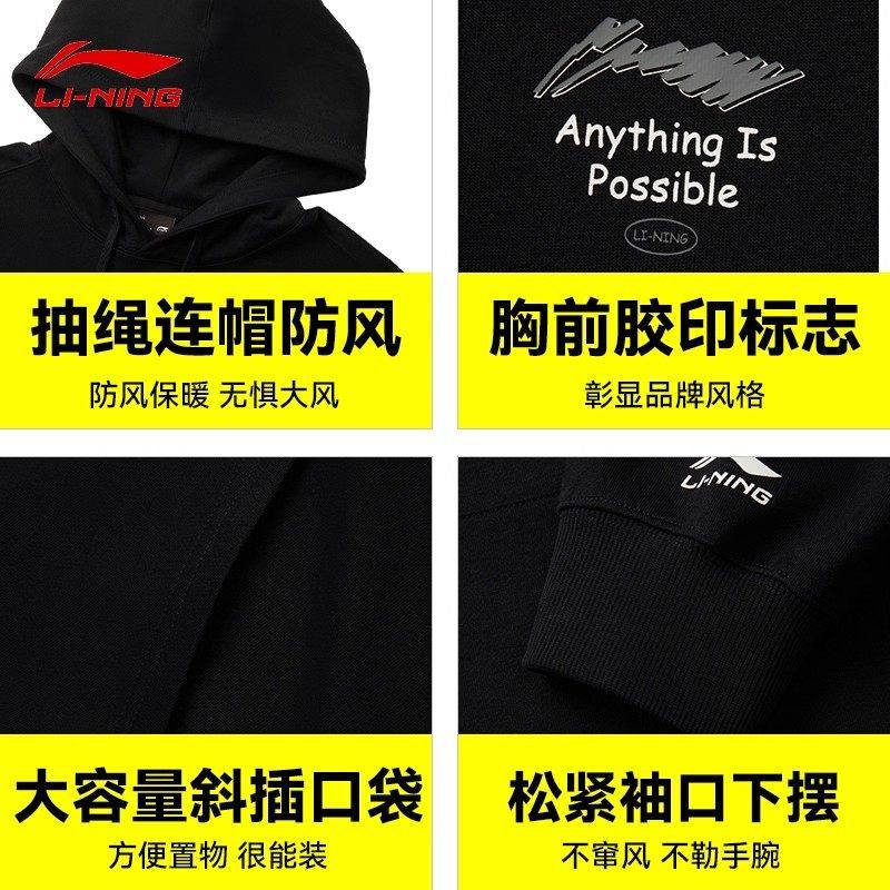 李宁卫衣男连帽秋冬新款宽松青少年加厚保暖长袖加绒运动休闲外套