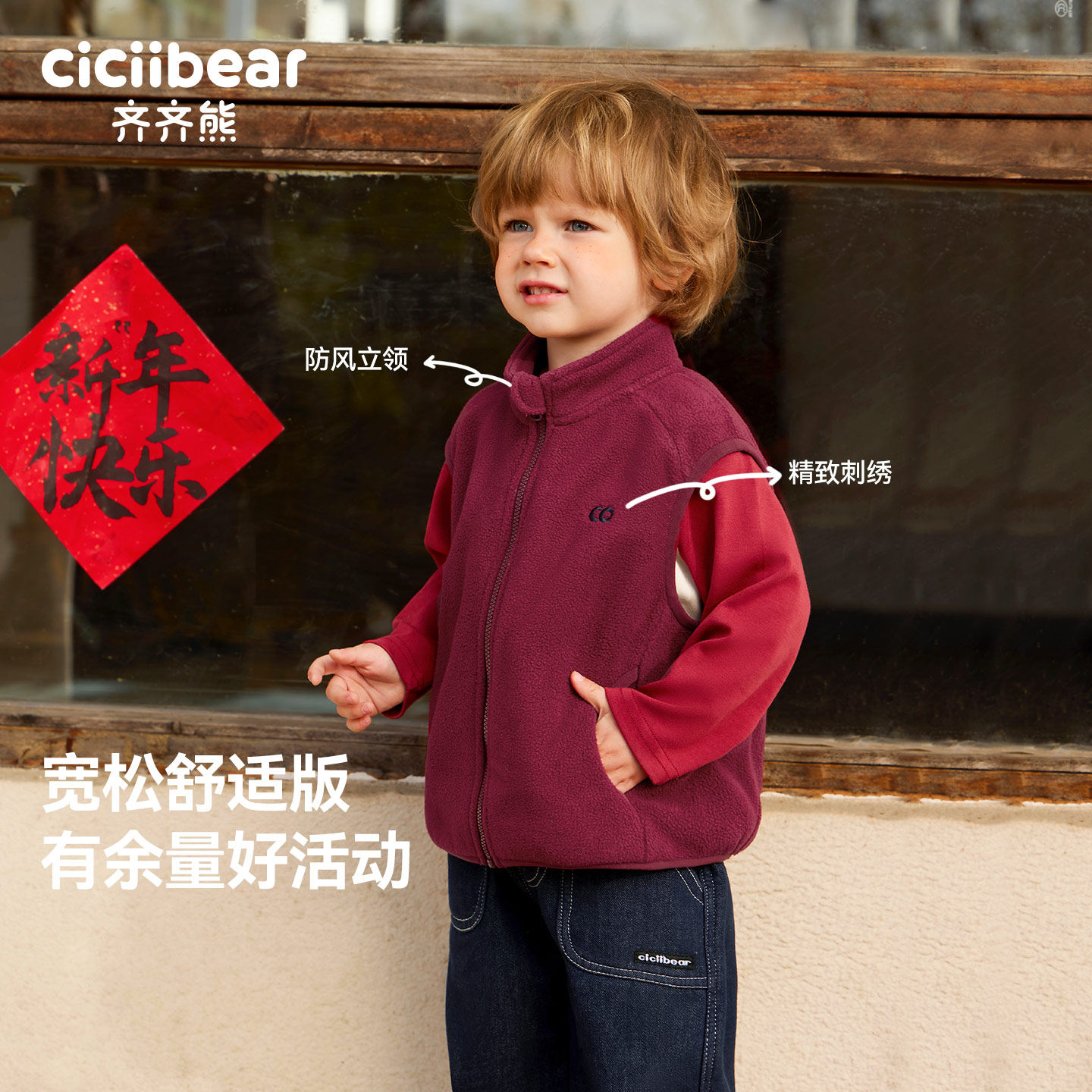 [抗静电7A抗菌]齐齐熊男童摇粒绒马甲秋冬宝宝红色新年儿童拜年服
