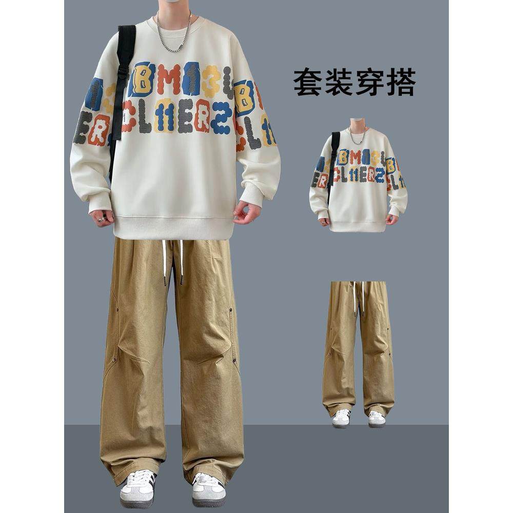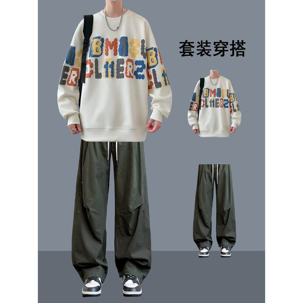 秋季青少年潮流帅气搭配休闲套装男生痞帅时髦设计感卫衣穿搭衣服