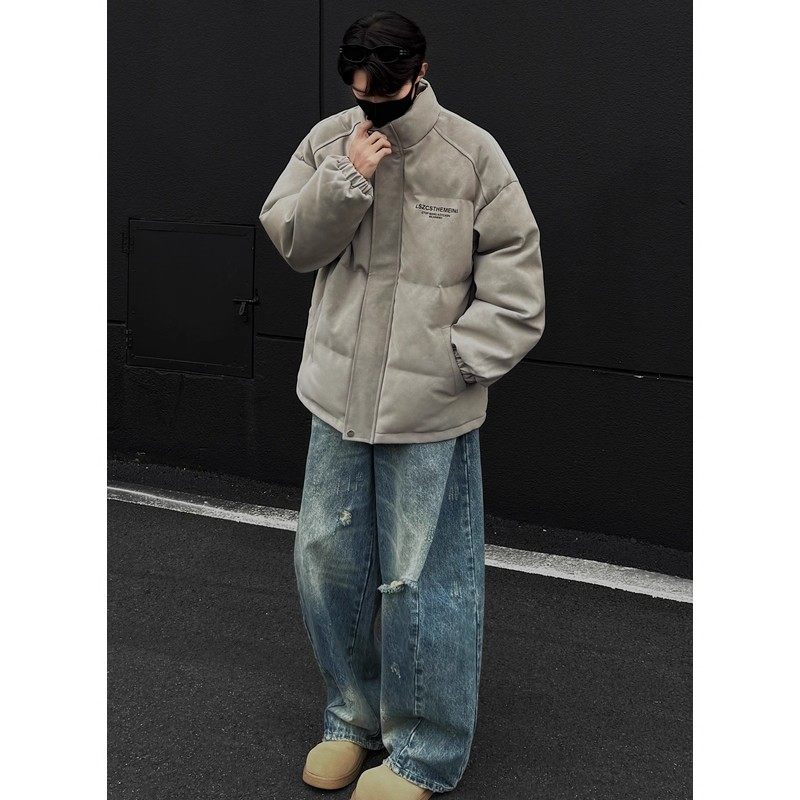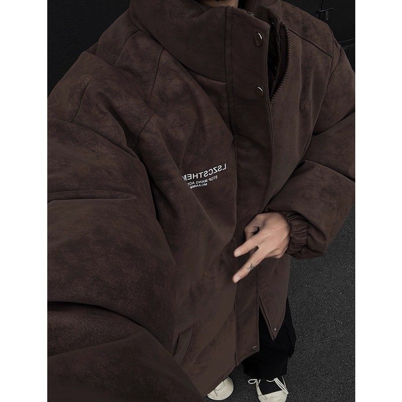 PU皮羽绒服男款秋冬季加厚高级感痞帅美式复古棉衣外套冬装棉袄子