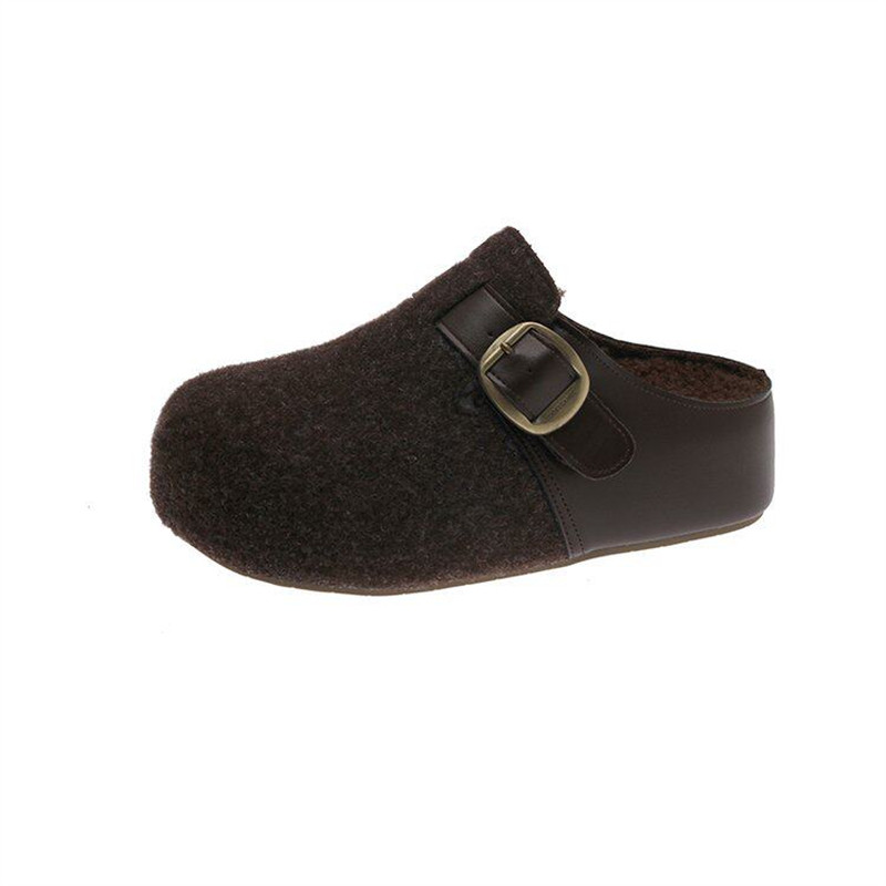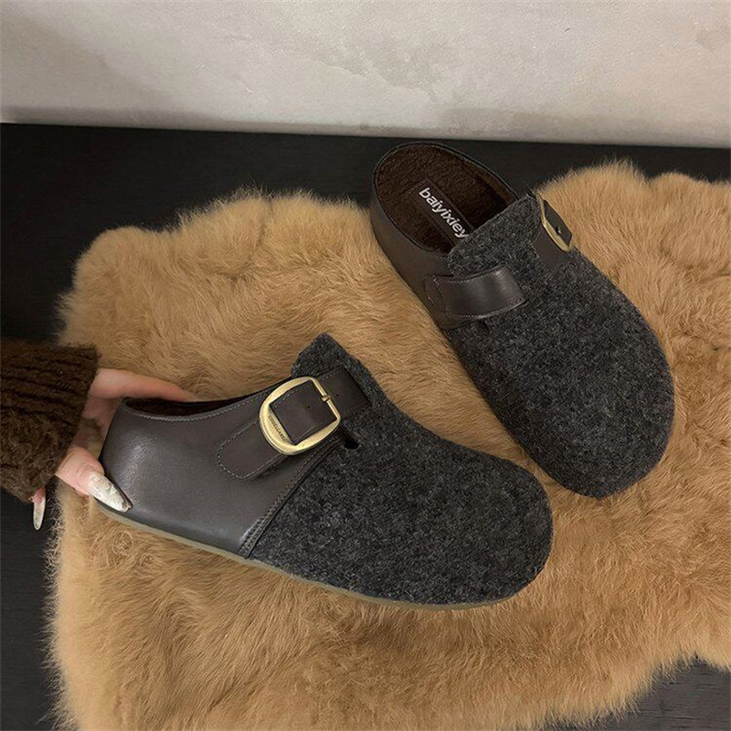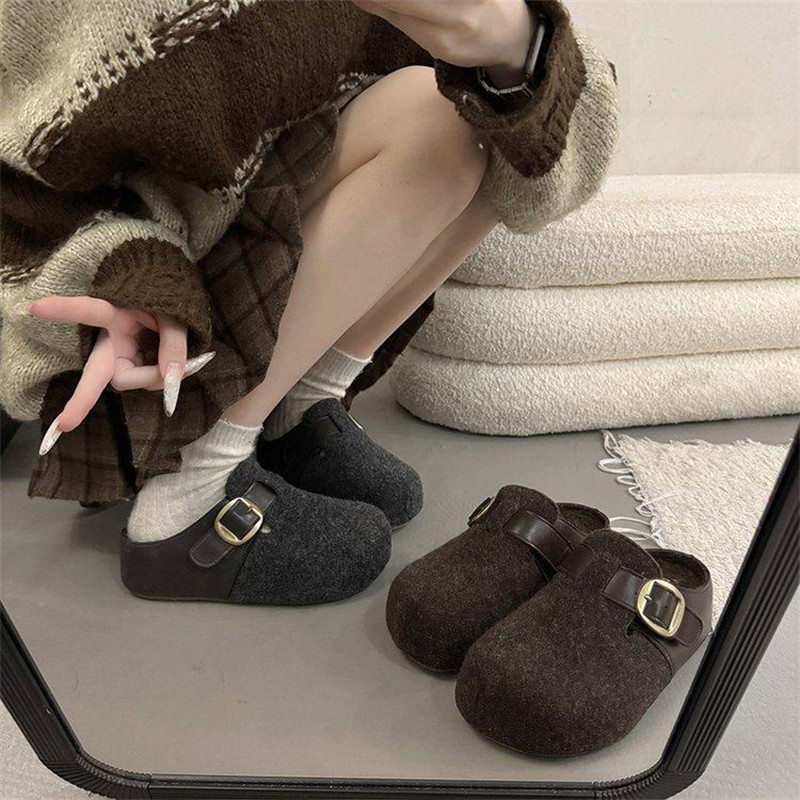 莆田鞋高品质厚底灰色勃肯鞋加绒包头半拖鞋女秋冬增高毛毛鞋棉拖