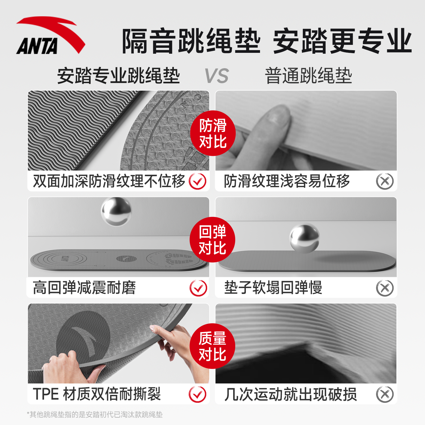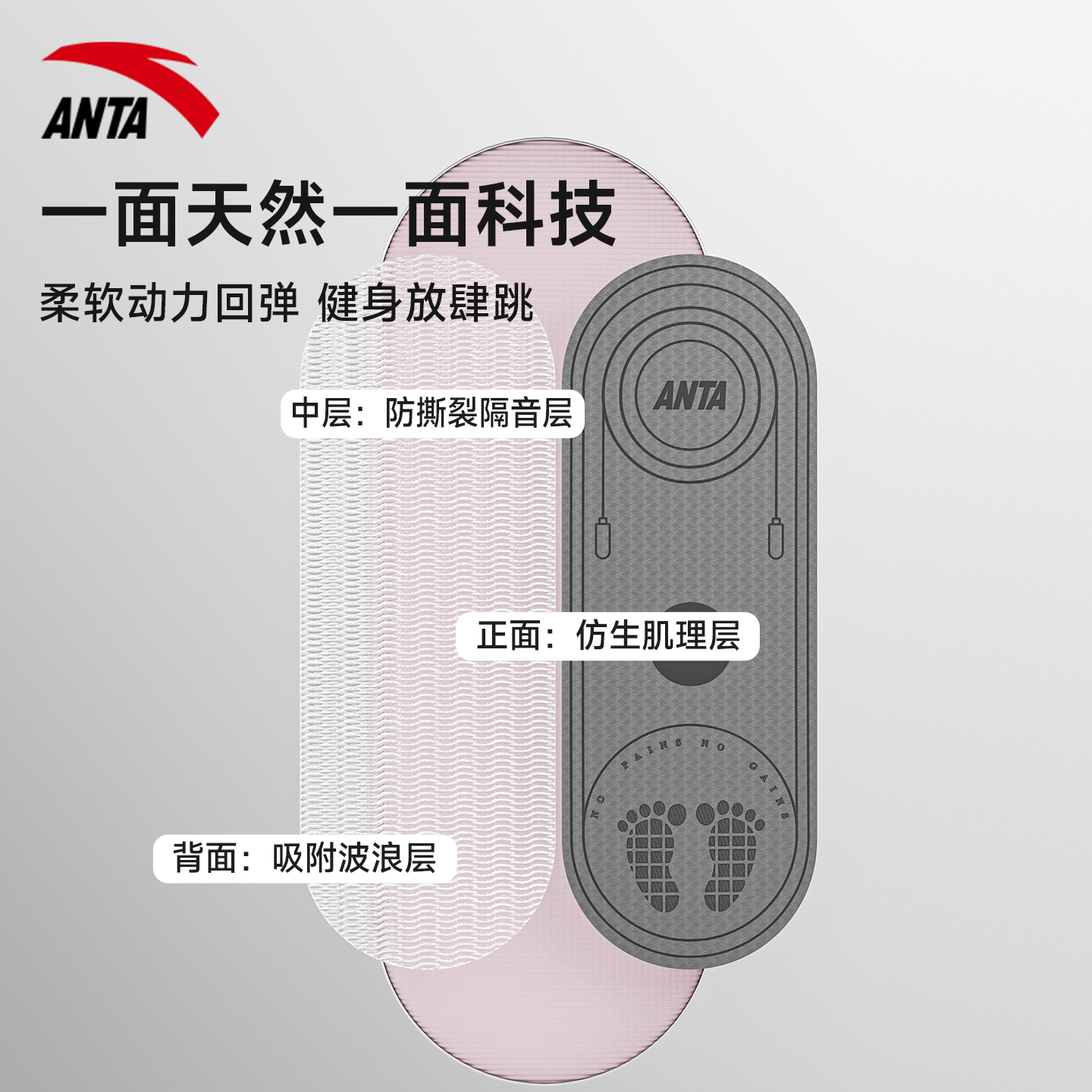 安踏室内跳绳减震垫瑜伽垫子地垫家用隔音防震静音专业防滑加厚垫