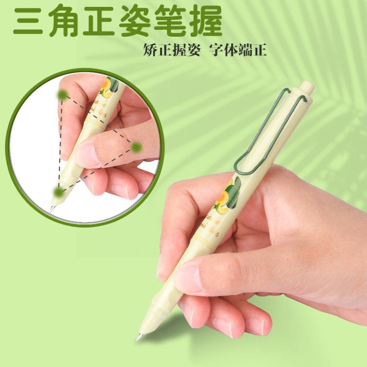 晨光牛油果热可擦按动钢笔三年级学生专用男女生可用可擦写替换墨囊晶蓝能擦的正姿钢笔暗尖笔套装毕业礼物