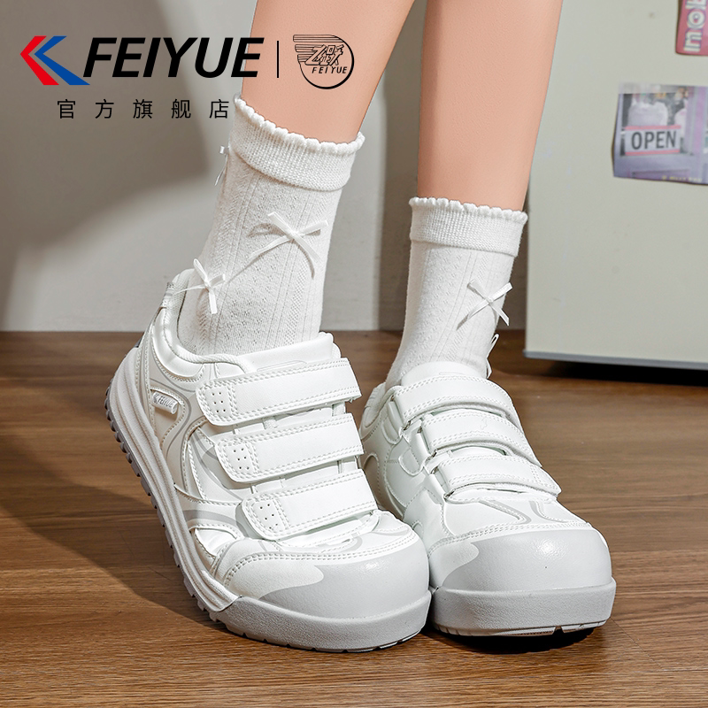 feiyue/飞跃女鞋魔术贴小白鞋2026春夏新款爆款透气厚底面包鞋子