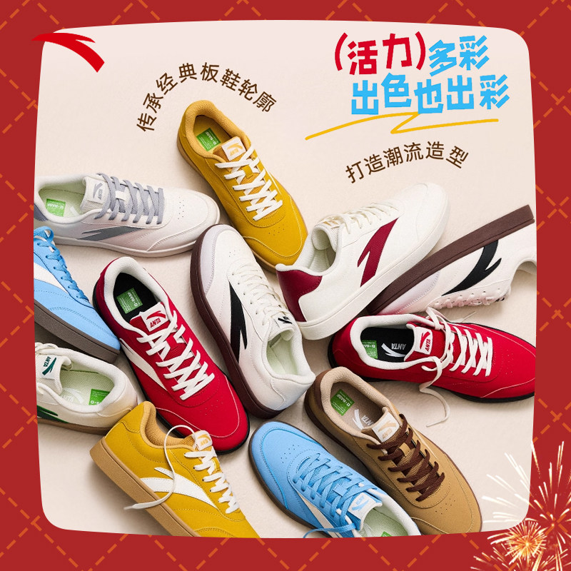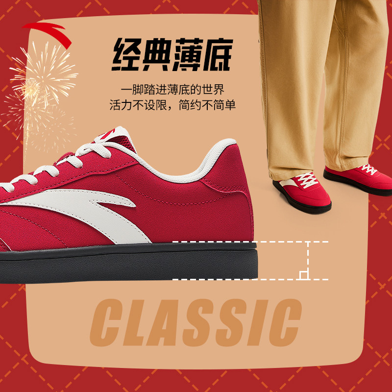 安踏活力板鞋男鞋2026冬季新款低帮薄底马年本命年新年红色板鞋子