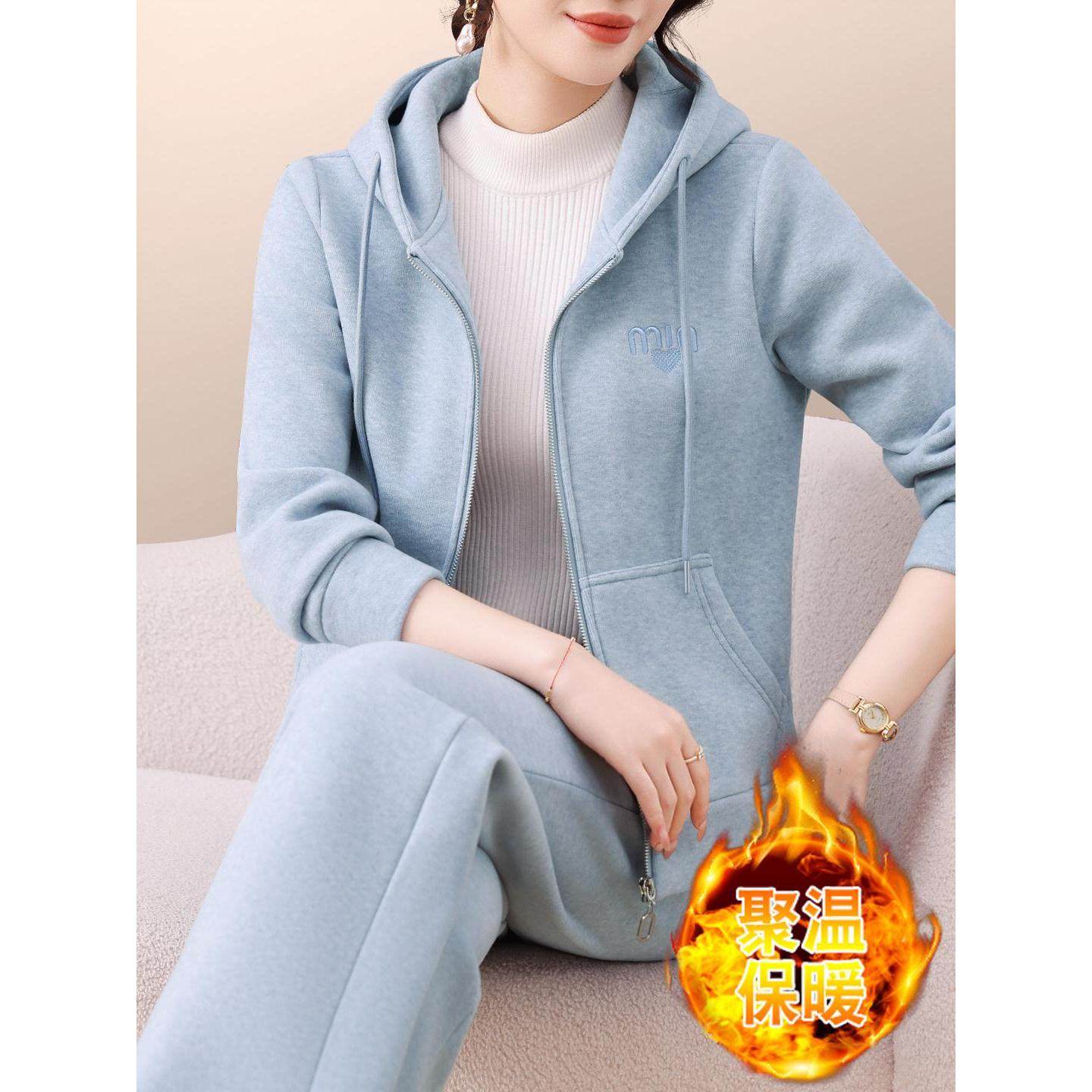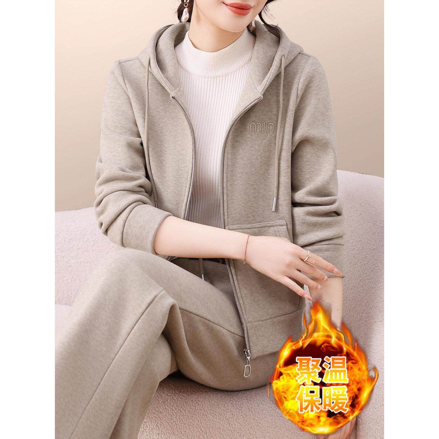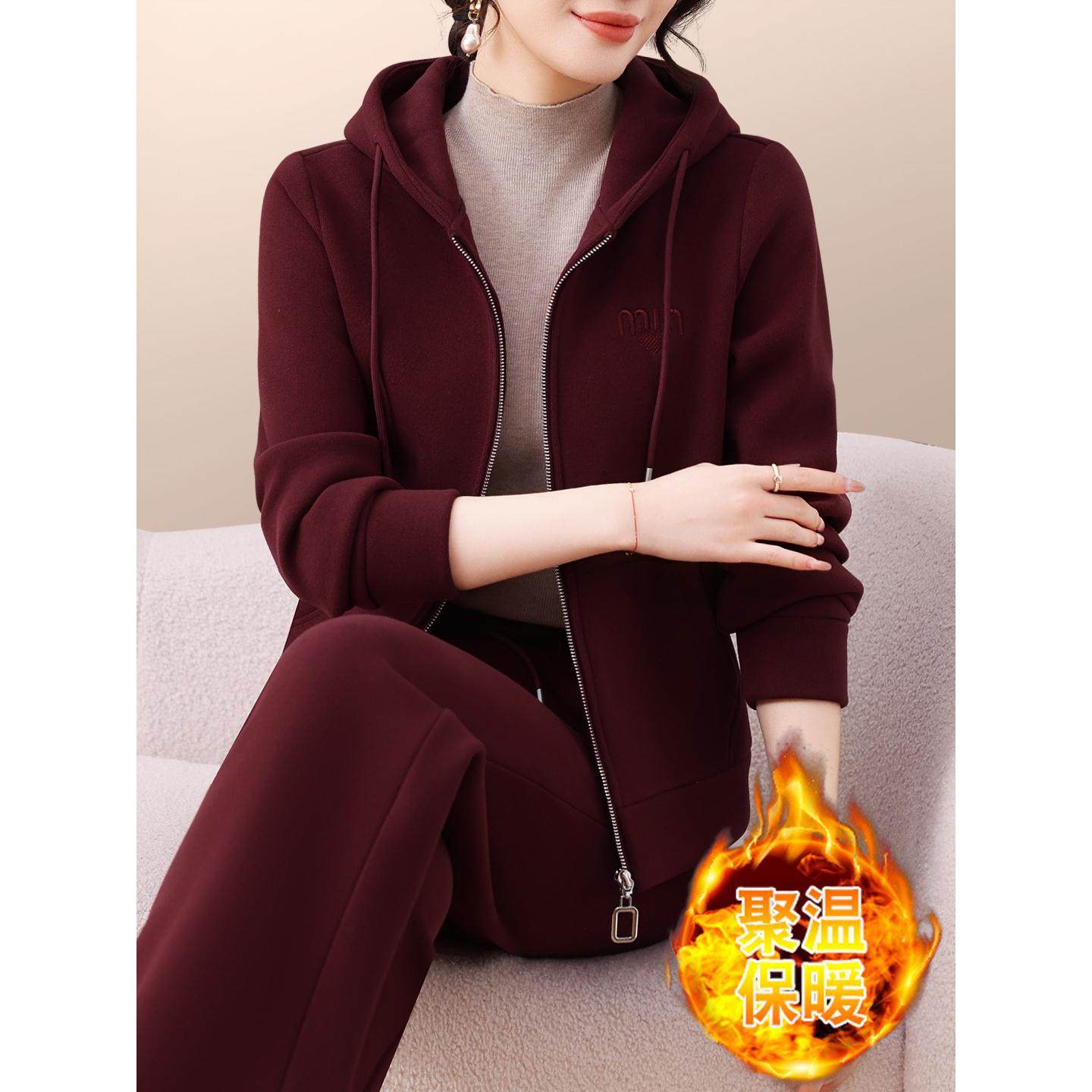 高级感运动服套装女冬季新款中老年人洋气妈妈卫衣加绒加厚两件套