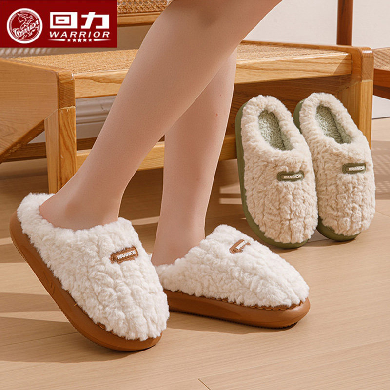 回力毛绒棉拖鞋情侣2025冬加绒加厚底毛毛拖鞋女防滑保暖棉鞋H140