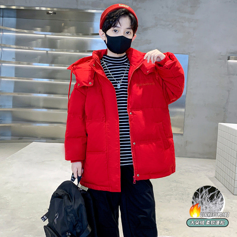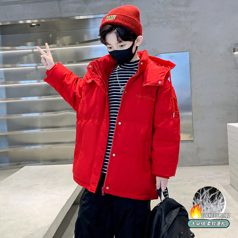 儿童装男童冬装羽绒服2024新款中大童冬季龙年本命年红色白鸭绒潮