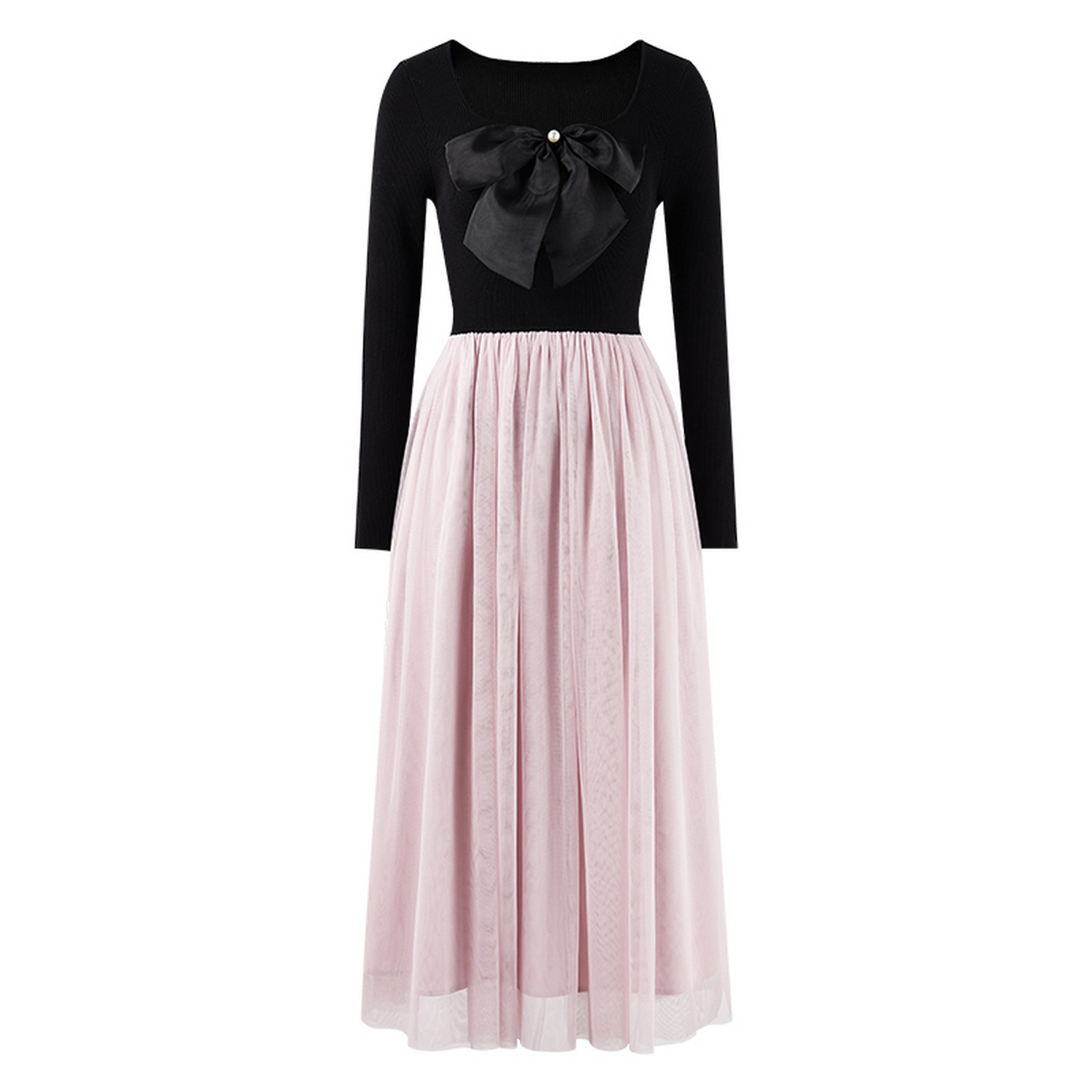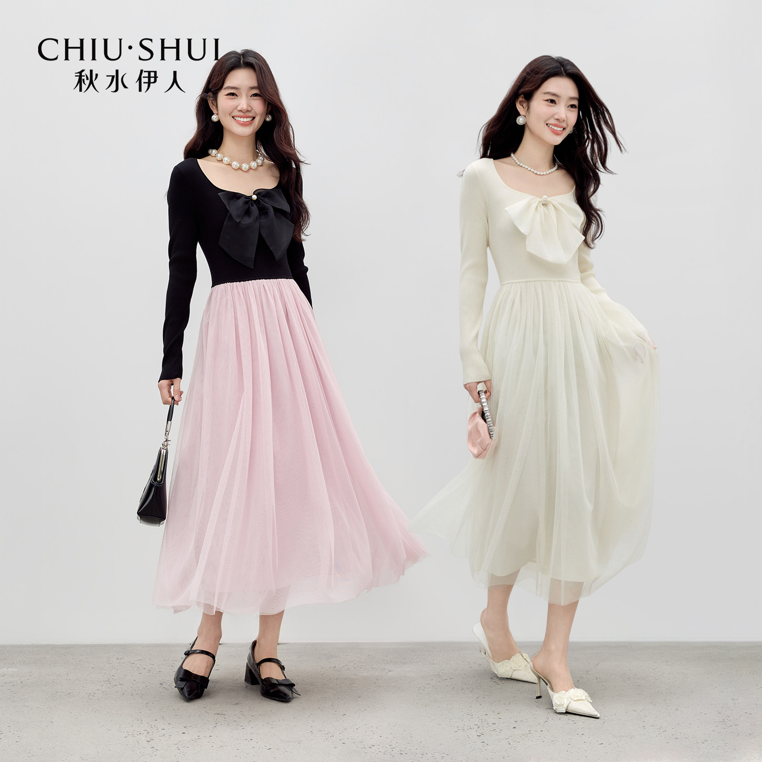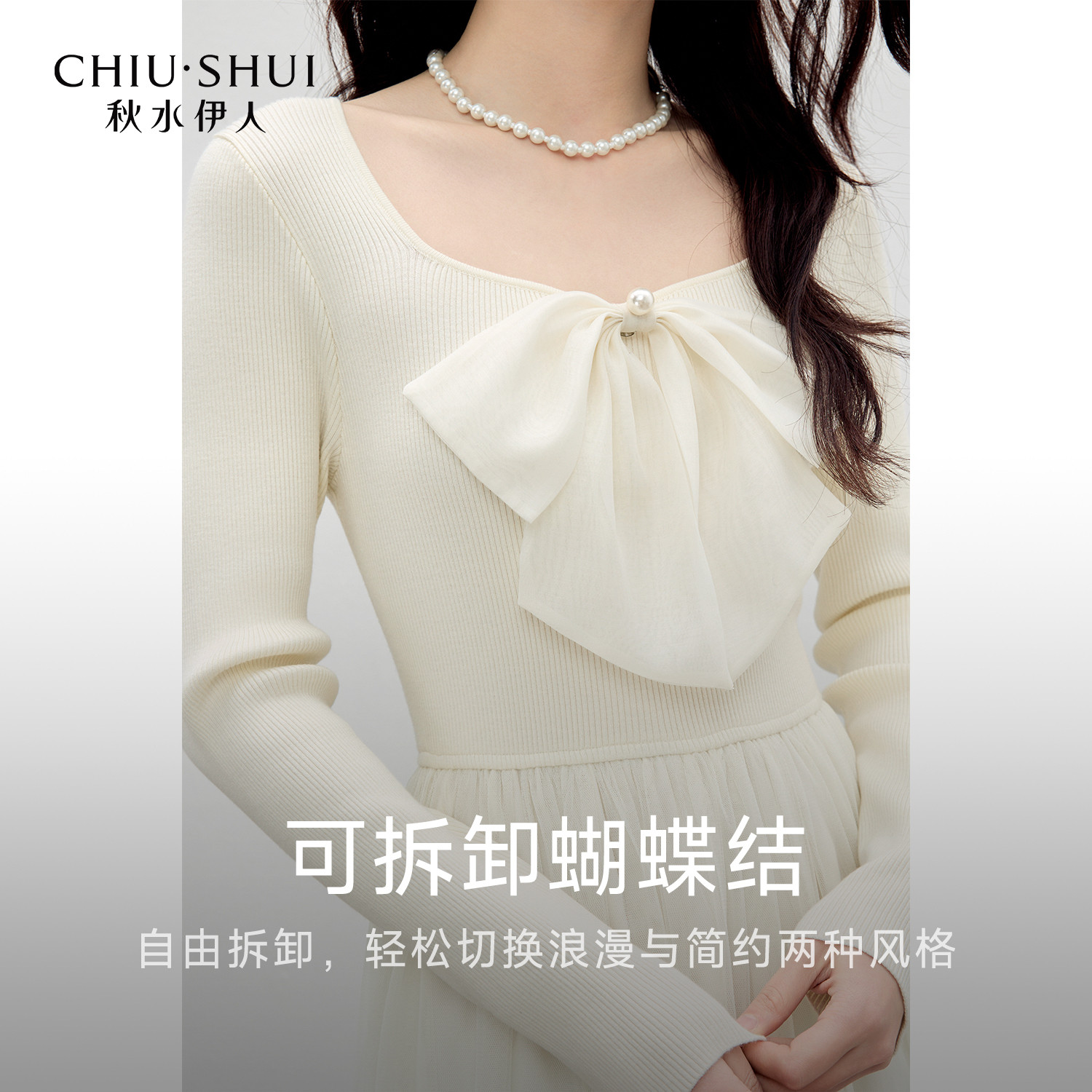 秋水伊人蝴蝶结针织连衣裙 2026年春季新款女装收腰套头长款裙子