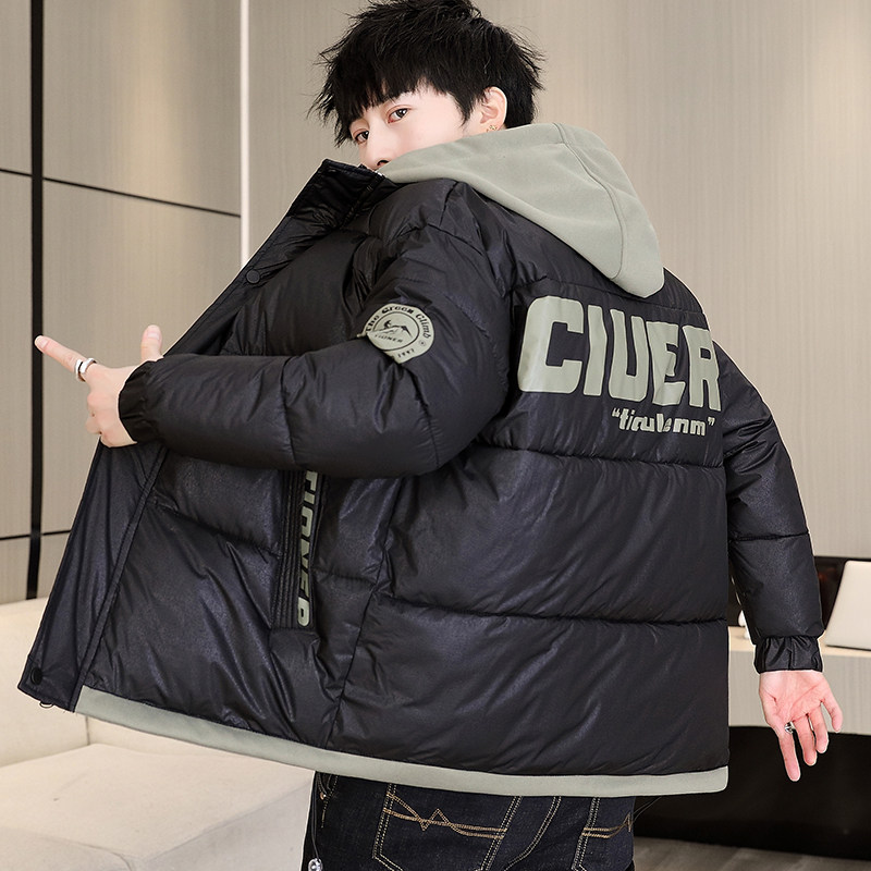 冬季13青少年潮牌假两件羽绒服12岁男孩初高中学生棉衣15大童棉袄